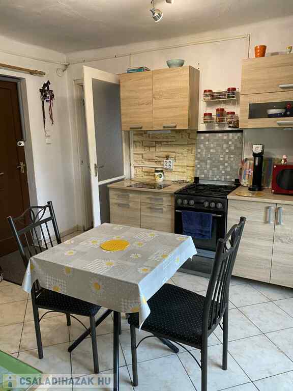A ház 44 nm alapterületü+ terasz,komfortos. Víz,gáz,villany , cirkó kazán.