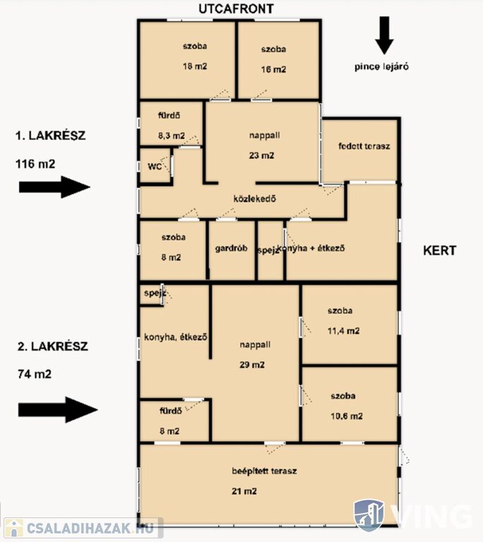 Plusz bevételi forrásként, az egyik lakrész kiadható!!