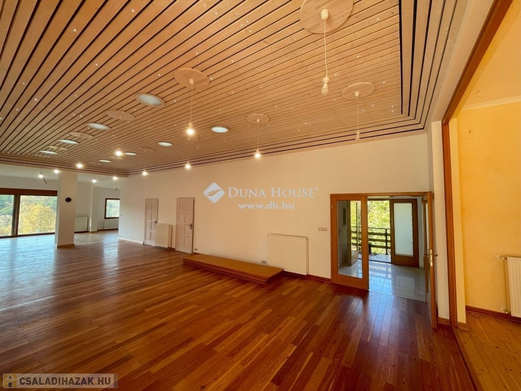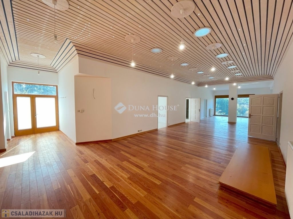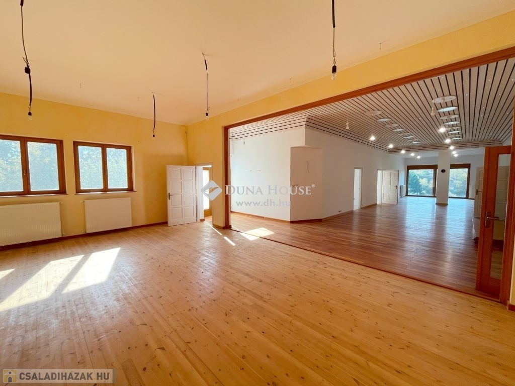 A település nyugati oldalán bújik meg ez a különleges adottságú, sokoldalúan hasznosítható ingatlan. Alkalmas lehet kulturális, egészségügyi, üzleti vagy magáncélra egyaránt de kombinálva is.Az épület 2 szintes (alagsor 220 + földszint 250 m2) , eredeti funkcióját tekintve az alagsorban gyümölcsfeldolgozó, később pékség üzemelt. A földszinten az elmúlt években alapos átalakítás és korszerűsítés zajlott, korábban pajtaszínház volt, később gyógyászati funkcióra lett áttervezve. A lakószint éke a tekintélyes méretű (94 m2) nappali tér, pompás kilátással a környező tájra. Egy elhúzható fa-válaszfal szeparálja a ( 52 m2 -es) különtermet. Ezeken kívül konyha, étkező, négy szoba, öt fürdő valamint mellékhelyiségek vannak kialakítva. Nyugati oldalról egy könnyűszerkezetes melléképület csatlakozik a házhoz.