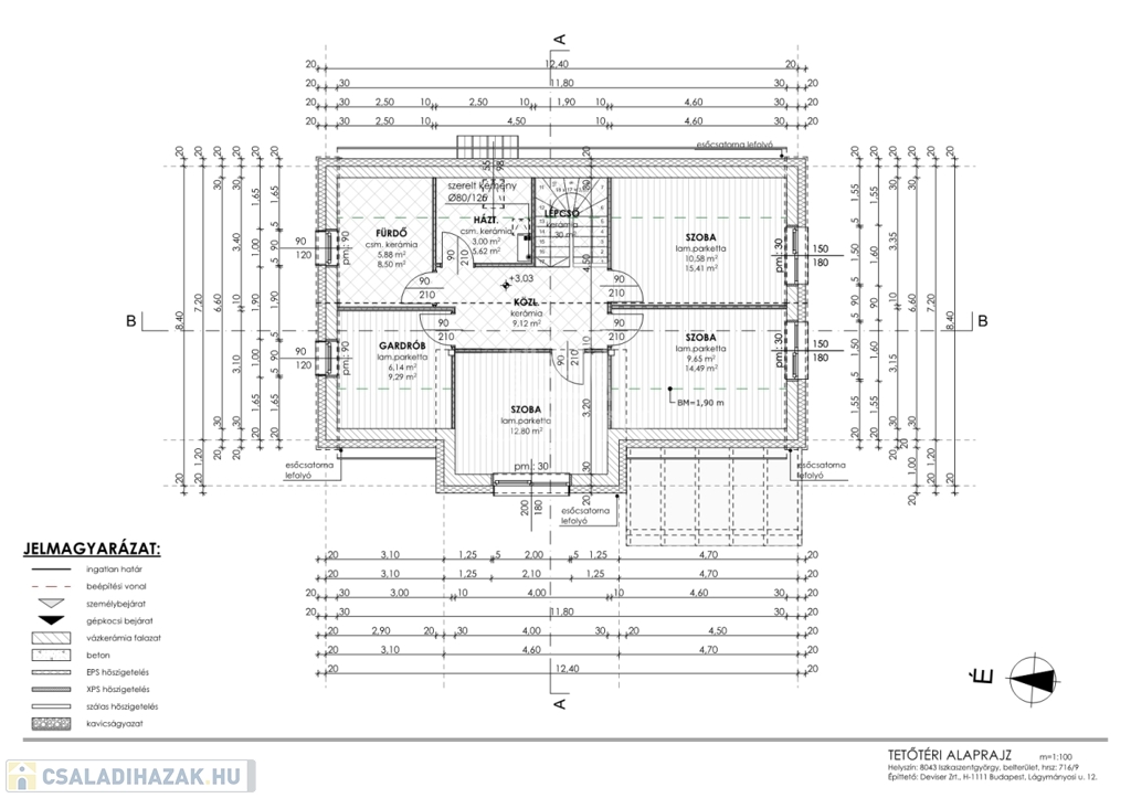 A ház elosztása: 152 m2 hasznos alapterület (bruttó: 170m2):