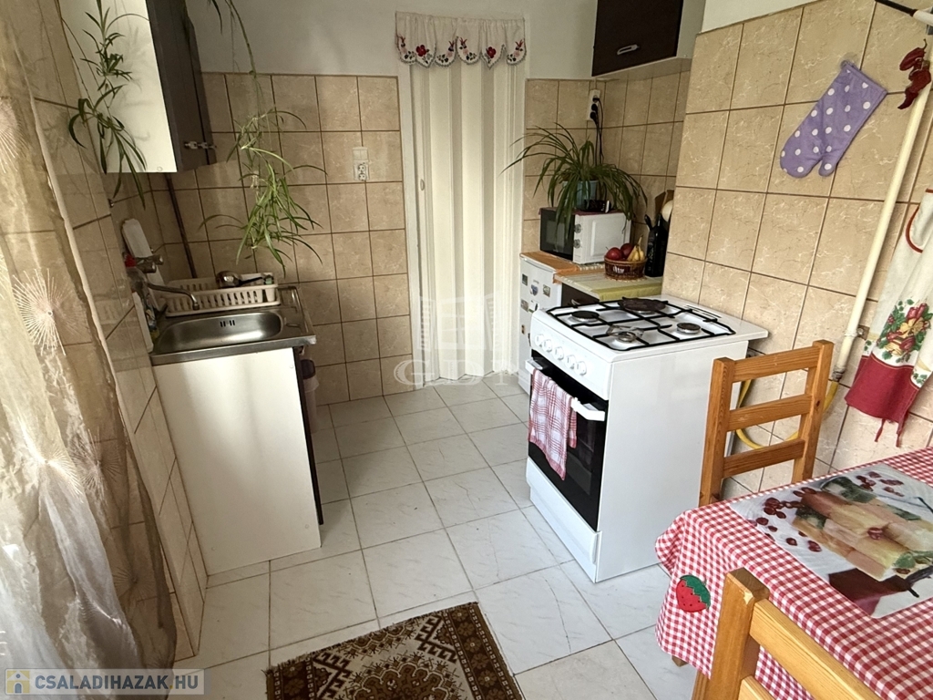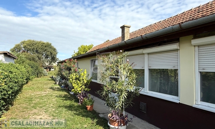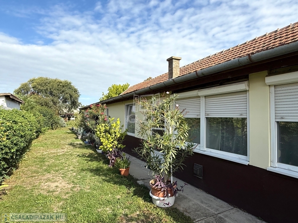 Izsákon, csendes kisutcában, 740 nm telken, 80 nm, 2+1 szobás családi ház eladó. Stabil, száraz vegyesfalazatú, néhány éve felújítás keretében cserélve lettek a nyílászárók, burkolatok és a villanyvezetékek is, most pedig klíma került beszerelésre. Melléképület kis átalakítással megfelel garázs kialakítására, tárolásra. Kertje konyhakerti zöldségek termesztésére alkalmas.