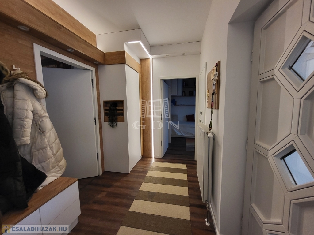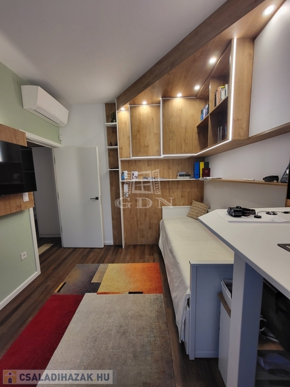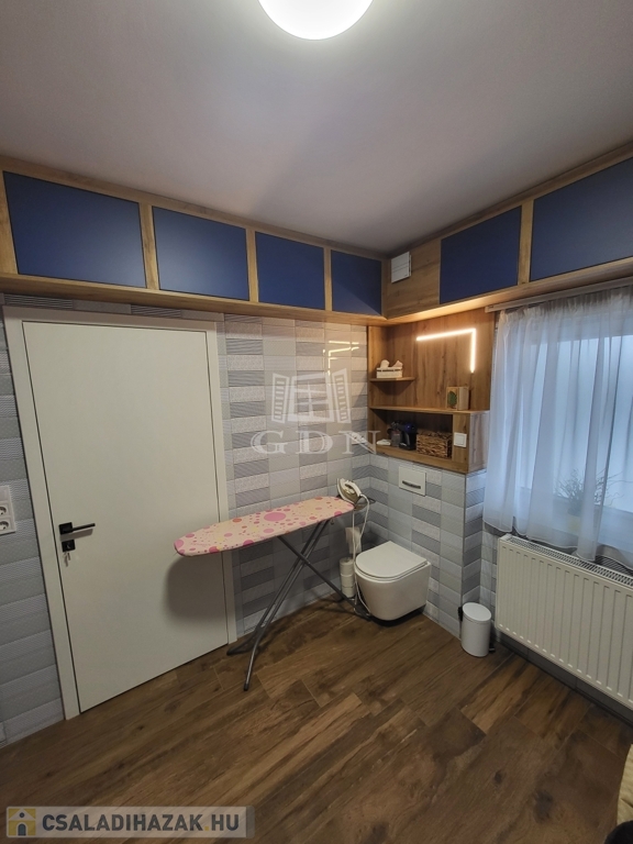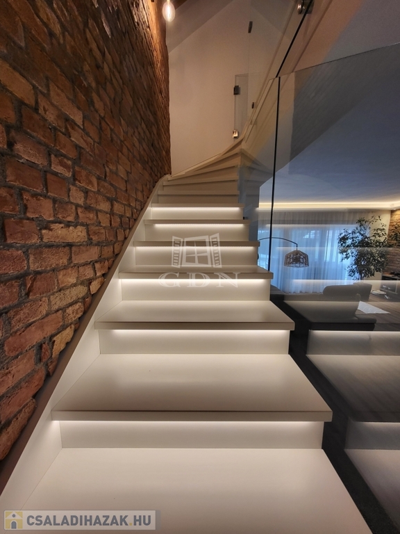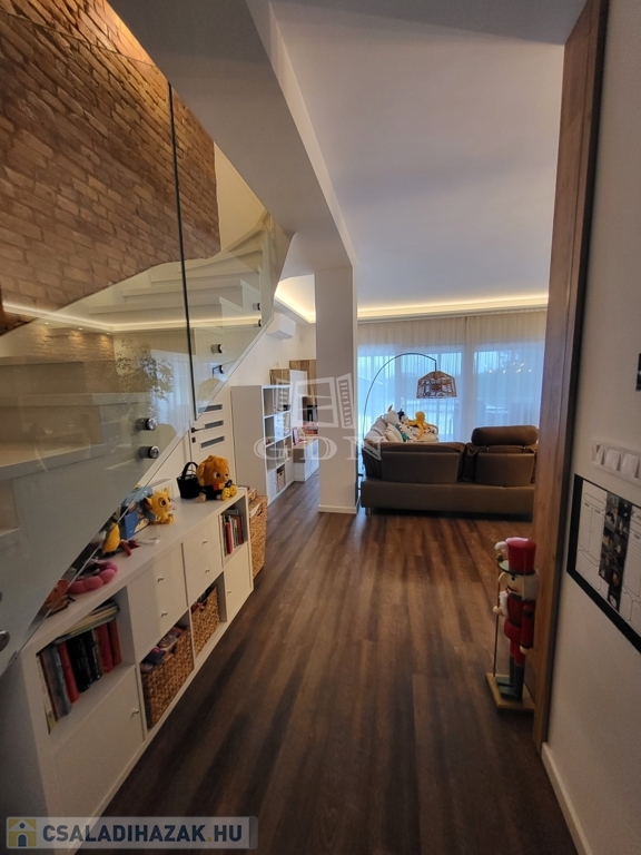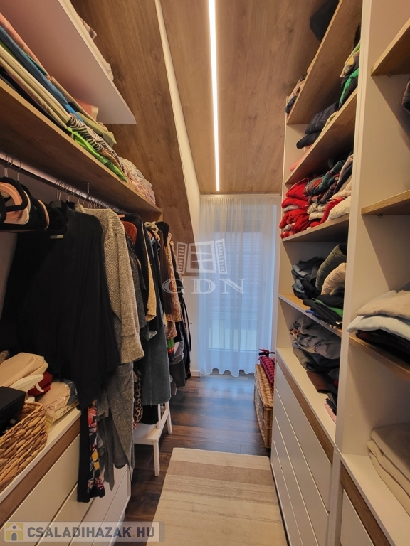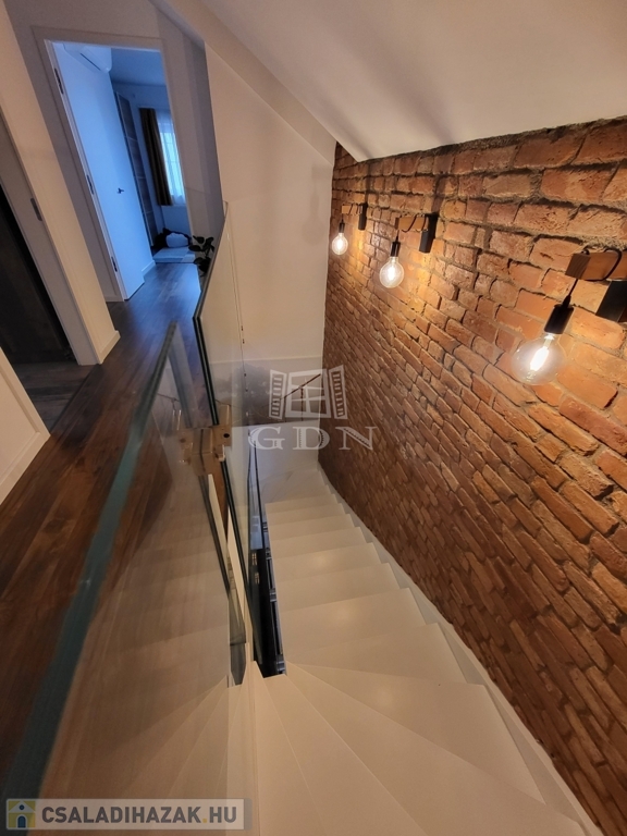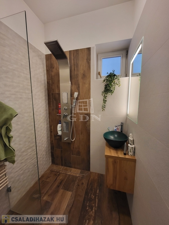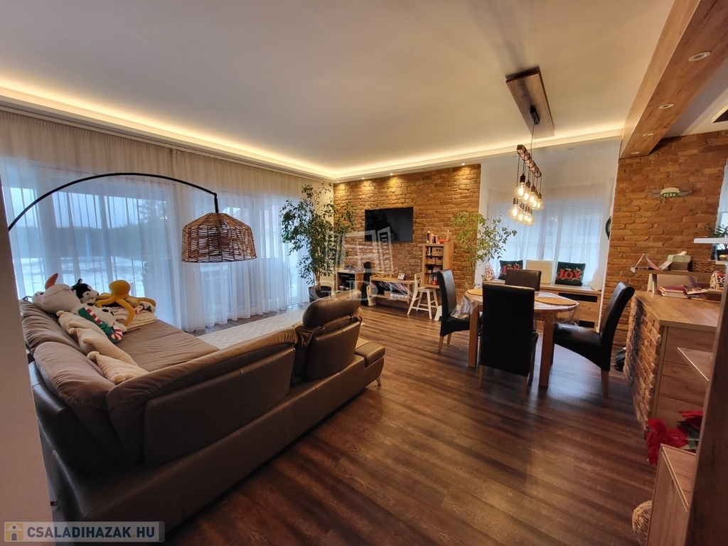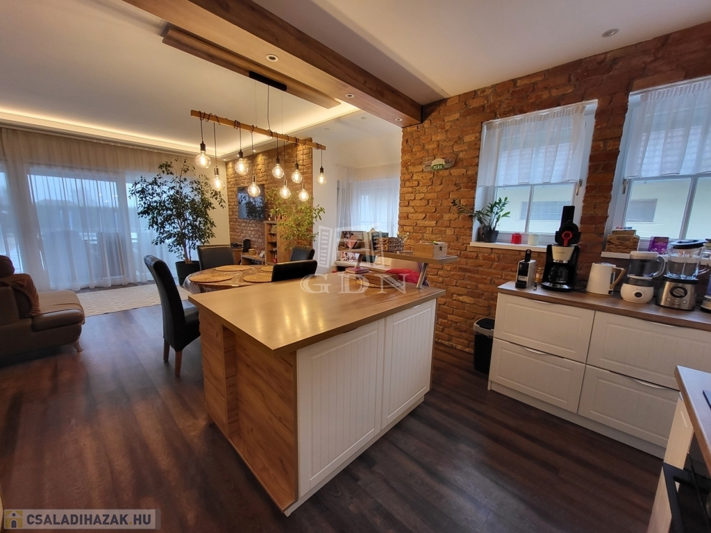 Ják átmenő forgalomtól mentes csendes utcájában eladó, páratlan adottságokkal rendelkező luxusingatlan. A lakóház mindkettő szintje átgondolt,praktikus, kényelmes kialakítású. Magas műszaki, technikai felszereltséggel átalakított ingatlan 2022-ben nyerte el kifogástalan esztétikai formáját. Tulajdonosai különös figyelmet fordítottak a harmonikus megjelenésre, a helyiségek egyenletes, kellemes fényviszonyainak biztosítására. Ennek érdekében hangulatos fali világítócsatornák, ledszalagok, álmennyezeti világítások, bútorok mögé épített világító felületek kaptak helyet. Négy rétegű üvegezéssel ellátott hatalmas tolóajtós felület biztosítja a természetes fényviszonyokat az ingatlan terasza felöl. Az erkélyajtó elektromos aluredőnnyel felszerelt. Közel 40 m2 -es terasz köti össze a házat az 1400 m2-es , szépen karbantartott kerttel. Elektromos hálózata 2x16 A, 1x40 Amper. A tetőn 23 db napelem található, 9.4 kw teljesítménnyel, invertellel. A dupla garázsban elektromos autó töltési lehetrőséggel. Az ingatlan fűtése Bosch kondenzációs kazánon kívül, modern cserépkályhával, központi hűtő -fűtő klímával történik, 5 db Daikini klíma került beépítésre. A ház négy hálószobával, három fürdővel rendelkezik. Amerikai konyhás nappalija 47 m2. Érdekessége a hangulatos ablakfülkéje izgalmas