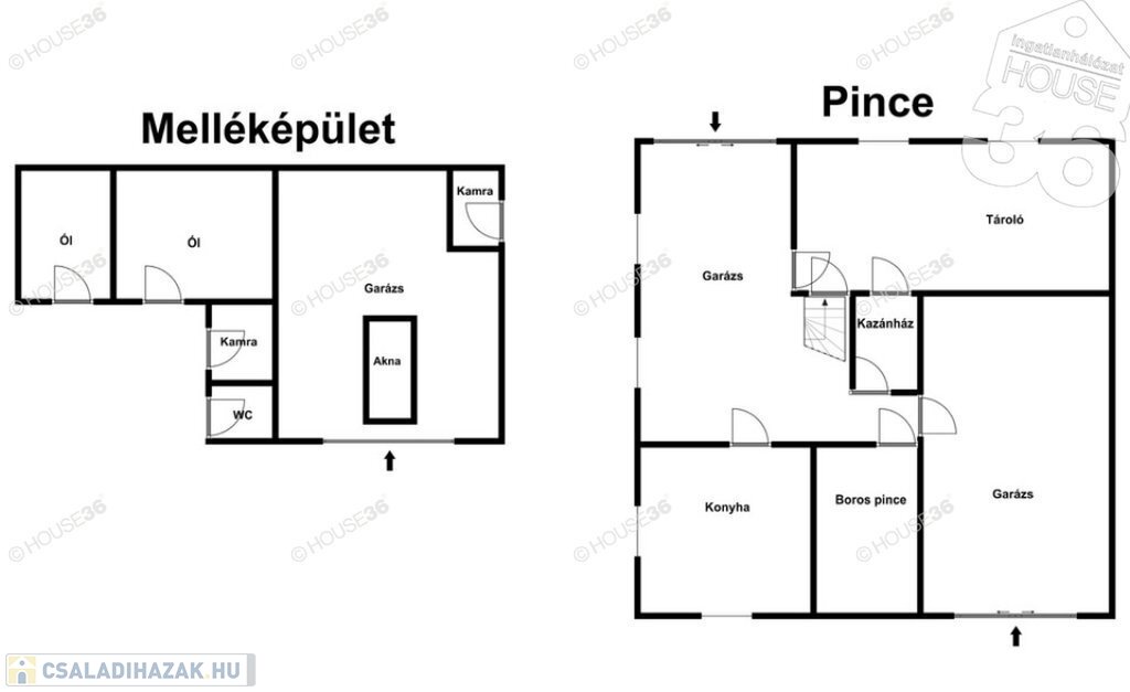 Egész épület alatt szuterén, garázzsal, konyhával, tárolókkal