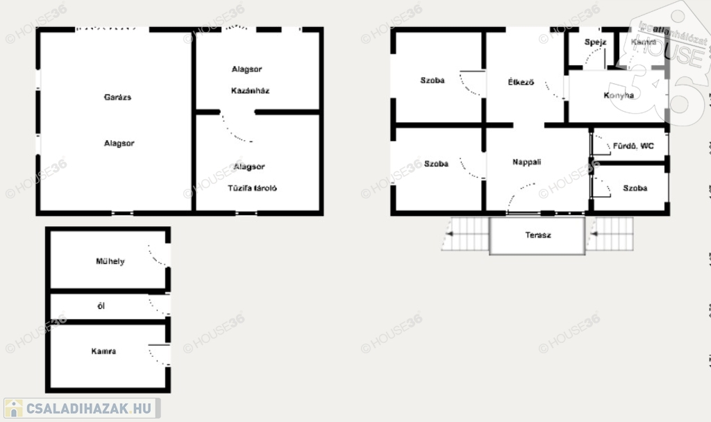 -garázs, kazánház, fatároló.