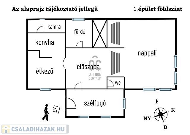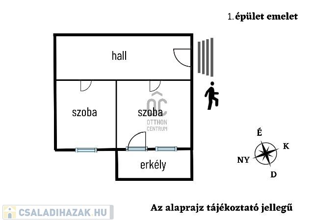 1. lakóegység: 1980-as építésű kétszintes épület (81 nm). A földszinten szélfogó, előtér, étkező-konyha, nappali, kamra, fürdőszoba, WC található, az emeleten pedig egy folyosóról nyíló két szoba. Az ingatlan nagyon jó megoldásokkal rendelkezik: tágas terek jellemzik, sok ablak teszi világossá a fő élettereket, fűtése pedig gázzal történő légfűtés, radiátorok nem találhatók az ingatlanban. Két hűtő-fűtő klíma (az étkezőben és a nappaliban) is gondoskodik a kellemes hőérzetről. Nagy, kényelmes erkély kapcsolódik az emelethez, az épülethez pedig egy 4X5 m-es garázs is tartozik.