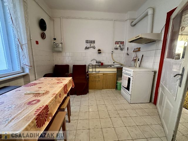 2. lakóegység: 1965-ös építésű, "Kádár-kocka" (70 nm). Helyiségei: előszoba, konyha, két szoba, félszoba, WC, fürdő és egy kis tároló. Fűtése gázkonvektorokon keresztül történik. A lakóegység igény szerinti felújítást igényel, szerkezetileg teljesen rendben van, korának megfelelő állapotú. Két utcafronti ablaka műanyag, a többi fa.