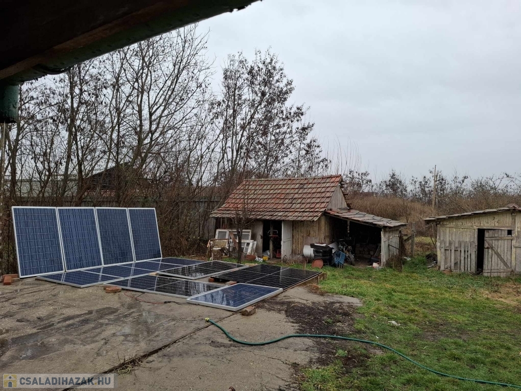 Jánoshidán (belterületen) a horgásztavak szomszédságában eladó 2 szobás felújítandó családi ház melléképületekkel, tárolókkal! (67 m2) + 26 m2-es fedett terasszal. Víz, villany és csatorna bevezetve + fúrt kút is van. A telken még egy 60 m2-es betonalap is található, melyre akár garázs vagy melléképület építető. A ház energiatakarékos - 14 db napelem panellel üzemeltetett - 14 db akkumulátorral. Az otthon melegét inverteres klíma (fűtésre 3,9 kw - hűtésre 4,2kw) kályha (szoba) és vegyestüzelésű kazán is biztosítja (fürdő és előszoba). . A villanyóra 25 amperes. 6 éve a villanyvezetékek rézvezetékekre lettek bekötve (nincs a falban), földelése megtörtént..