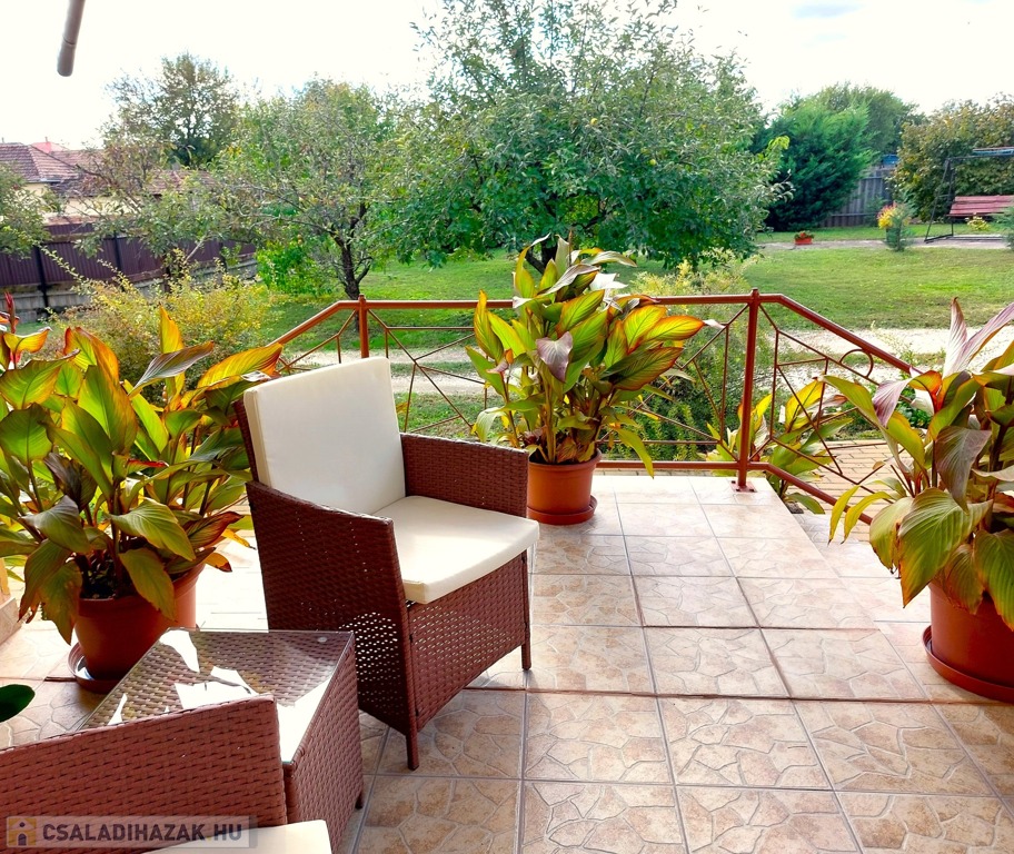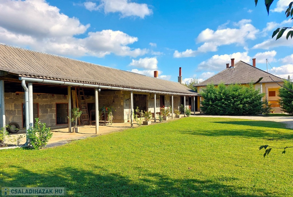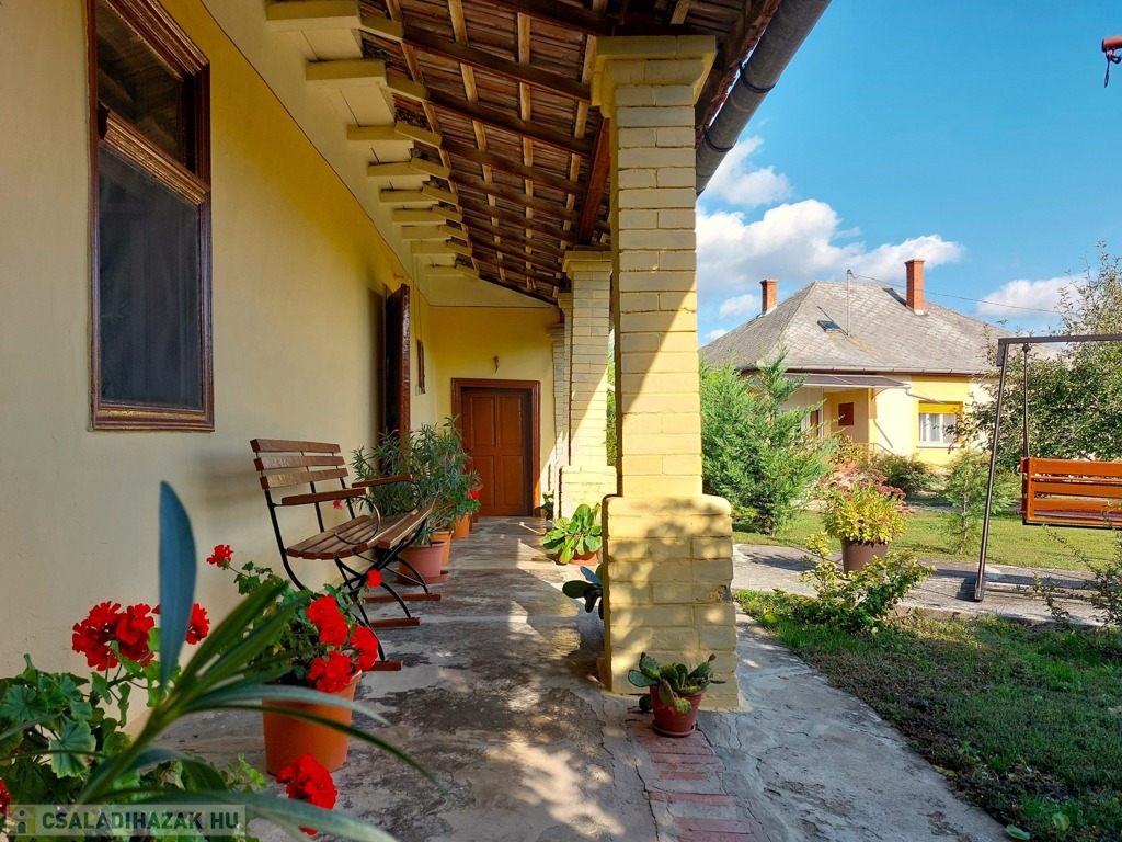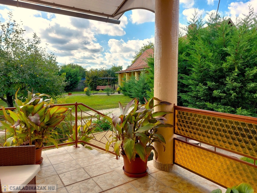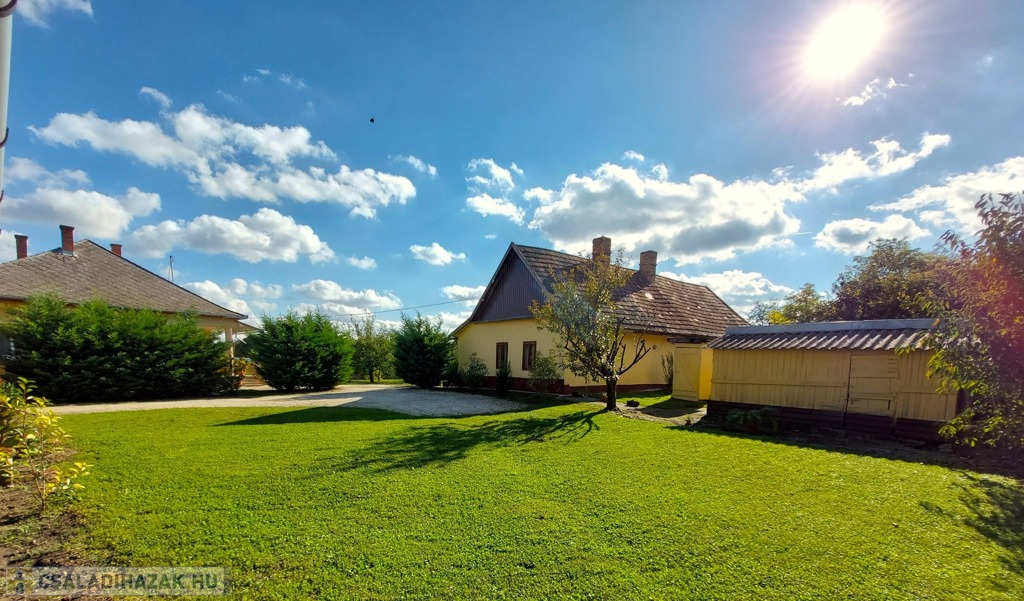 - a 2923 nm- es, körbekerített, dísznövényekkel (pl.: babérmeggy, leylandi ciprus) és termő gyümölcsfákkal és cserjékkel (alma, őszibarack, sárgabarack, cseresznye, birsalma, dió + mogyoró és füge) tarkított, körbekerített telken egy folyamatosan karbantartott otthonos lakóház, egy jó állapotú, hangulatos, tornácos "parasztház" és egy sokrétű felhasználásra alkalmas hatalmas melléképület található