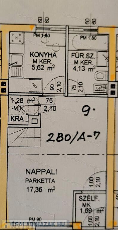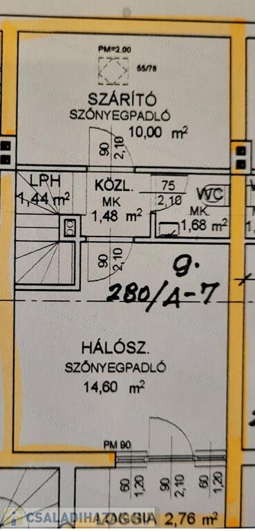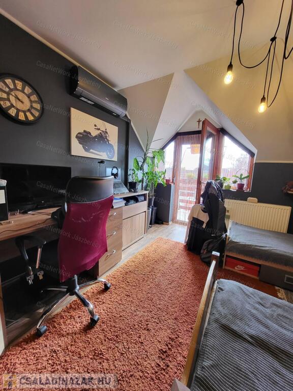 Felsőszint:  közlekedő, szoba, félszoba, WC, loggia