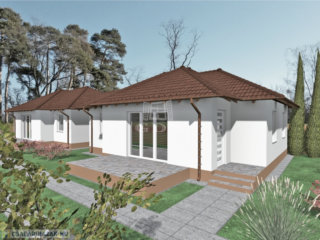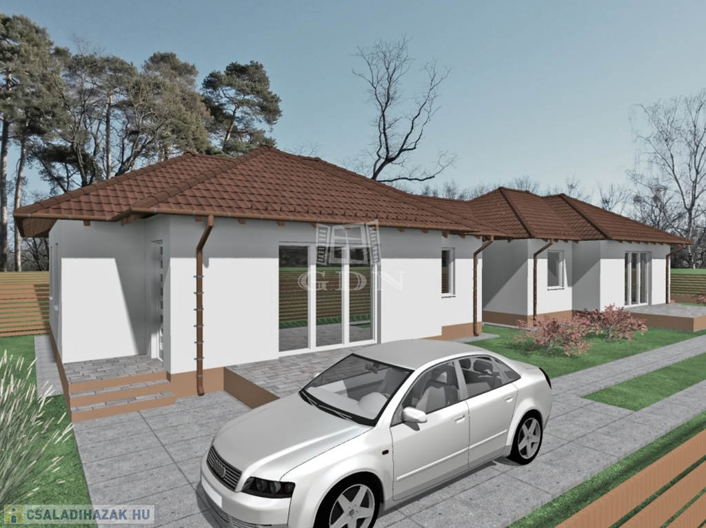 Az első ikerfél 280 m2-es kizárólagos használatú telekrésszel 59.99 mft.