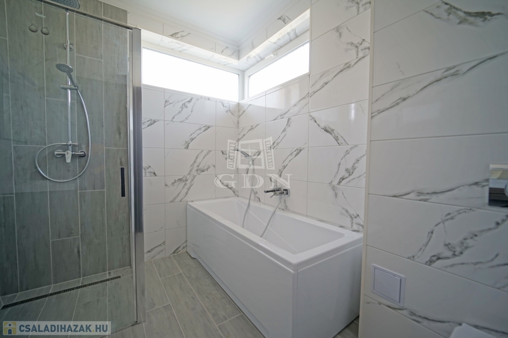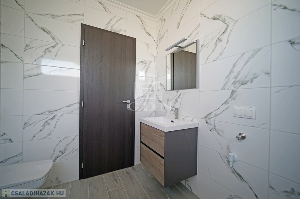 Az ingatlan tetejét Terran betoncseréppel fedték, a 7 légkamrás Aluplast nyílászárók korszerű 3 rétegű üveggel szerelt műanyag thermo kivitelűek, gránit párkányokkal,aluminium elektromos távirányítható okos redőnnyökkel és szúnyoghálóval. A belső nyílászárók CPL dekorfóliás prémium minőségűek.
