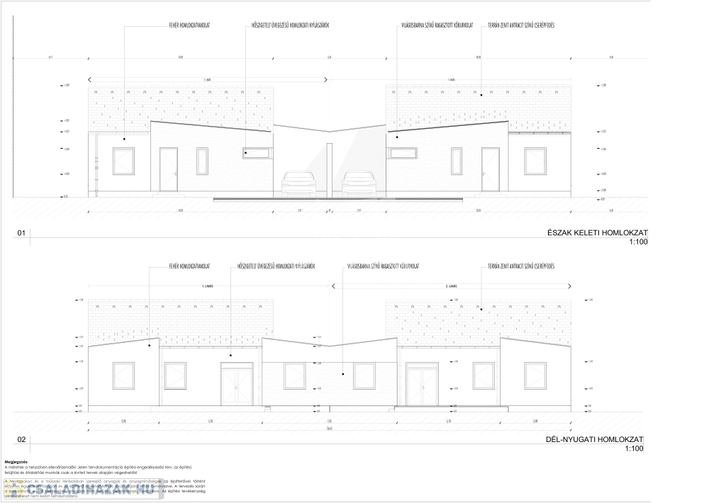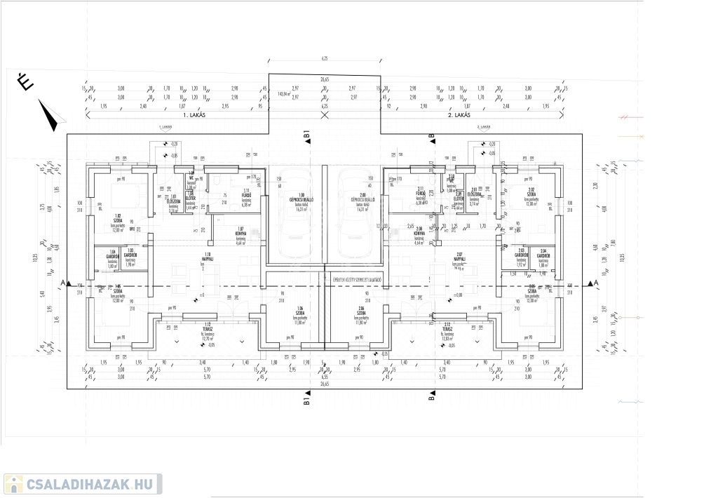 Jászberényben a Szatmári lakóparkban a Bársony utában, 798 m2-es telken, eladó 2db nettó 85,32m2-es + 12,83m2 terasszal és 16,31 m2-es gépkocsibeállóval rendelkező, 30-as Porotherm P30 N+F tégla falazóelemmel épült, fafödémes, 3 szoba plusz amerikaikonyha- nappalis kertkapcsolatos Ikerházfél.