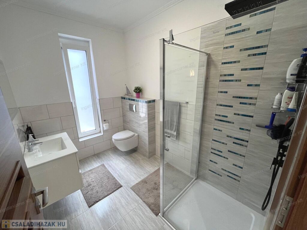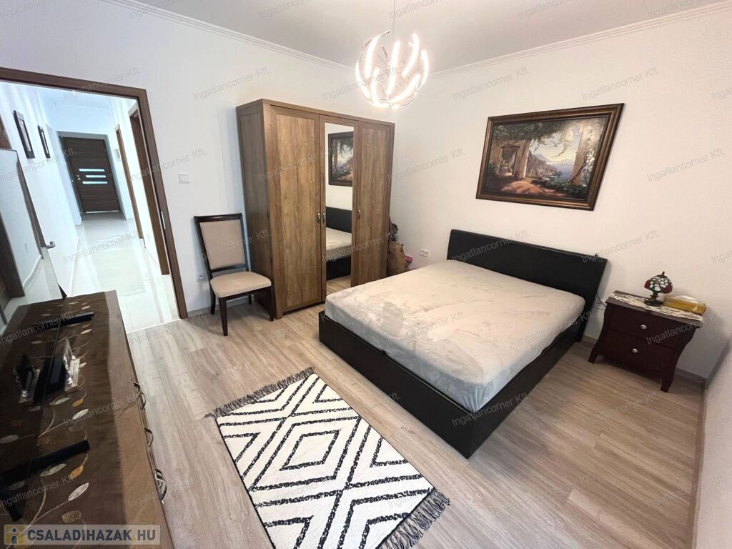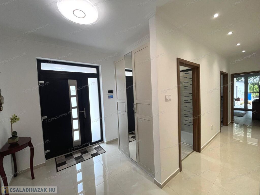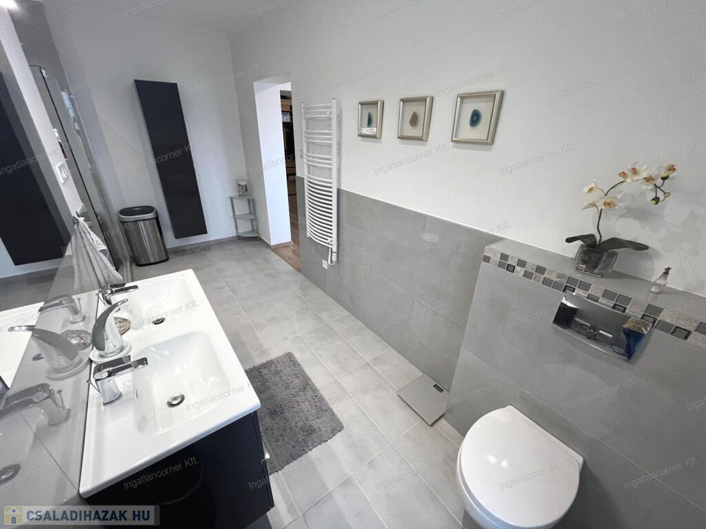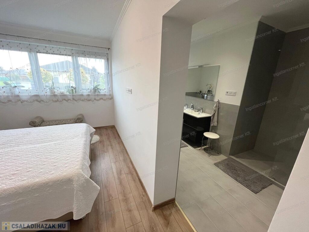 Fontos megemlítendő, hogy a szülői hálónak (master bedroom-nak) külön van egy saját gardróbszobája, ikermosdója és nagyméretű üveges zuhanyzója.