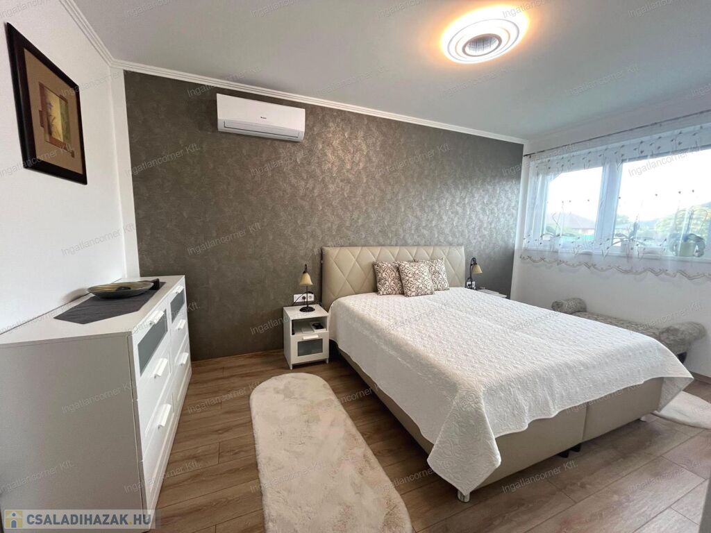 - FŰTÉS-HŰTÉS: Fűtés kondenzációs gázkazánnal, az egész házban PADLÓFŰTÉSSEL, a hűtésről pedig 3db, 3,5 kW-os hűtő-fűtő klíma gondoskodik.