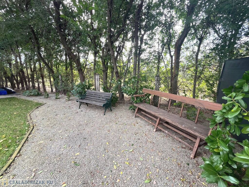 - KERT: A szépen parkosított kert locsolása fúrt kútról működő 5 körös automata öntözőrendszerrel történik, így a telek előtt, az utcai részen ültetett fák alatt is van öntözőrendszer. A kert végében csodás látványt nyújt a szomszéd telek 10 hektáros gyümölcsöse.