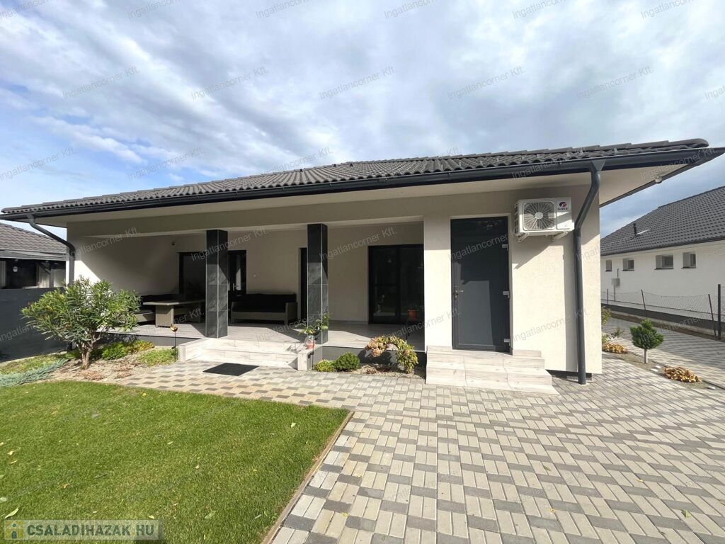 - PARKOLÁS: A telek minden oldalról be lett kerítve és a térkövezett udvar 5 autónak is biztosít parkolást. Az autóbeállón világító talajlámpák lettek letelepítve, valamint külön a házon is minden oldalról körben éjjeli fények lettek szerelve.