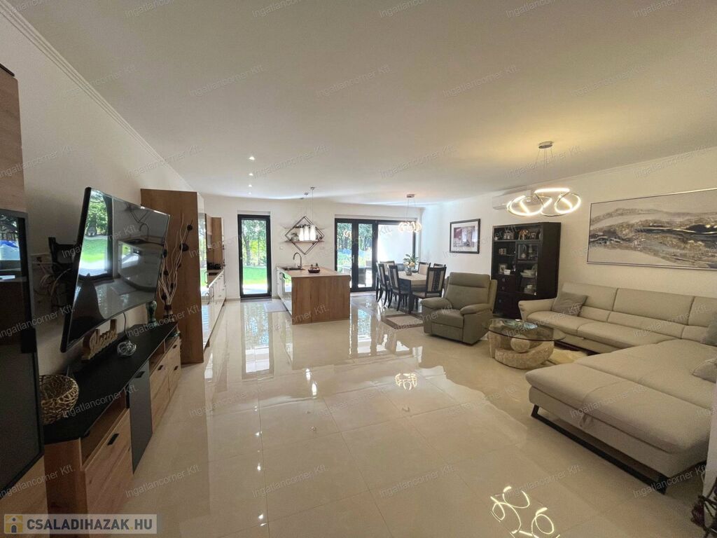 A Soroksári Auchantól csupán 15 percnyi távolságra, KAKUCS hangulatos új építésű részén, aszfaltos rendezett utcájában ELADÓ egy 2022-ben épült, KÍVÜL - BELÜL MODERN LUXUS családi ház, melynek nettó alapterülete 177 m2, amihez tartozik egy 45 m2-es DUPLA GARÁZS és egy ízlésesen parkosított 761 m2 telek.