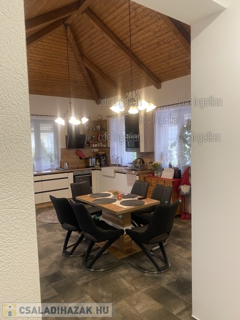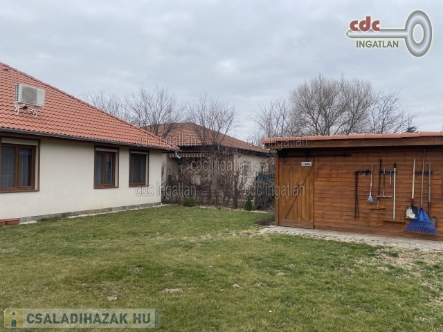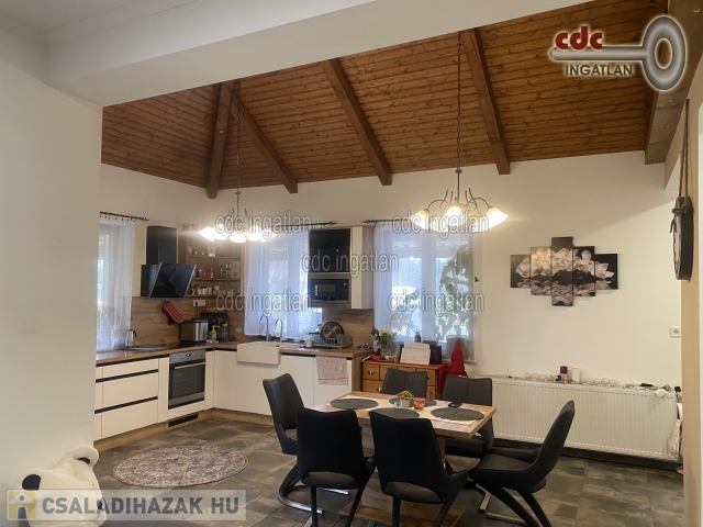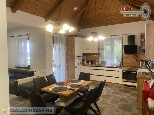 Kizárólag a CDC Ingatlaniroda kínálatában! Kakucs új parcellázású, csendes utcájában, új építésű házak szomszédságában, gyönyörű, nívós családi ház eladó! Az ingatlan 2019-ben épült porotherm téglából, 10 cm-es szigeteléssel. Az exkluzív ház 119m2-es, ebbe az alapterületbe a 24 m2-es garázs is beletartozik, mely közvetlen kapcsolatban van a házzal, átjárható és ugyanolyan értéket képvisel, mint a ház, burkolattal, fűtéssel, ablakokkal ellátott, így akár 1-2 szoba is kialakítható belőle, csak az elektromos garázsajtót kell lecserélnie normál ajtóra és már kész is az új szoba. A ház 2 szobával rendelkezik, amerikai konyhás nappali-étkezővel, (itt a különlegesség a fával kirakott nagy belmagasság), tágas fürdőszoba, háztartási helyiség, kazánház, külön wc és szép tágas előszoba helyiségekből áll. Fűtése gázcirkóval megoldott padlófűtésen és radiátorokon keresztül, valamint légtechnikával szerelt, mely hűtő-fűtő funkciót tölt be. Gyönyörű burkolatok, beltéri ajtók díszítik a házat, a nyílászárói elektromos alumínium redőnnyel szereltek. 2 fedett terasz öleli körbe a házat. A biztonságról 6 kamerás rendszer gondoskodik. Udvara 957 m2-es, szépen parkosított, részben viacolorral burkolt, elektromos kapuval szerelt. A locsolás fúrt kútról megoldott öntözőrendszeren keresztül. A kertben helyet kapott egy igényes, 18 m2-es faház, mely jelenleg tároló funkciót tölt be. A beépített konyhabútor gépekkel és a beépített gardróbszekrény a vételár részét képezi. Egy tökéletes, impozáns otthont ajánlok figyelmébe, ha szeretné megtekinteni, kérem hívjon bizalommal!