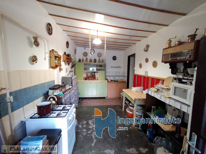 Elhelyezkedése: Belterület Tájolása: észak-keleti tájolású Állapota: Jó Komfort besorolása: Komfortos Építési éve: 1930 Alapterülete: 95 m2 Telekterülete: 1 600 m2 Szobák száma: 3szoba Felújított: Felújított Felújítás éve: 2021 Felújítás során elvégzett munkák: Festés, Villanyrendszer csere, Vízrendszer csere, Csempe csere, Járólap csere, Fűrdőszobai szaniterek cseréje, Utólagos vízszigetelés, Keményfelújítás Közművek: Gáz, Víz, Villany, Csatorna Gázellátás: Vezetékes Vízellátás: Vezetékes víz, Kútról Melegvíz-ellátás: Gázkazán Áramellátás: 230V Fűtés módja: Gáz, Fa, Vegyes Fűtés típusa: Konvektoros, Kandalló Homlokzat állapot: Jó Építési mód: Vályog Tető formája: Magas Tető anyaga: Cserép Parkolási lehetőség: Utcán, Telken Kilátás: Utcafronti kilátás, Udvari kilátás Napelem: Nincs Jellemzői: Alacsony rezsi, Csendes környék, Jó közlekedés, Udvari terasz, Beépített konyhabútor, Kert, Kerítés, Riasztó, Egyedi vízóra , Saját fúrt kút, Zöldterület, Jó közbiztonság Energetikai besorolás: Nincs adat Egyéb jellemzők: Terasz, Melléképület Tv, Internet: Kábeltévé, Internet, Vezetékes telefon Közelben: Iskola, Óvoda, Autóbuszállomás, Orvosi rendelő, Bolt, Gyógyszertár Rezsi költség(Ft): 20000 Terhelések: Tehermentes ingatlan Eladásra vonatkozó információk: Az ár tartalmazza a teljes berendezést, Azonnal beköltözhető