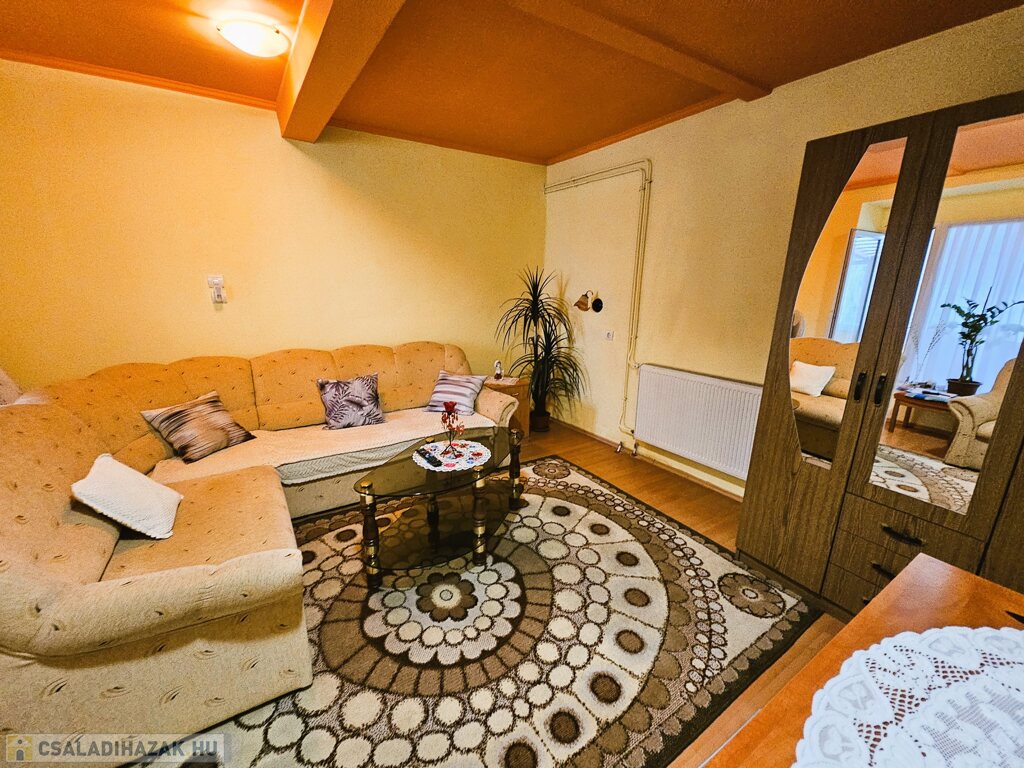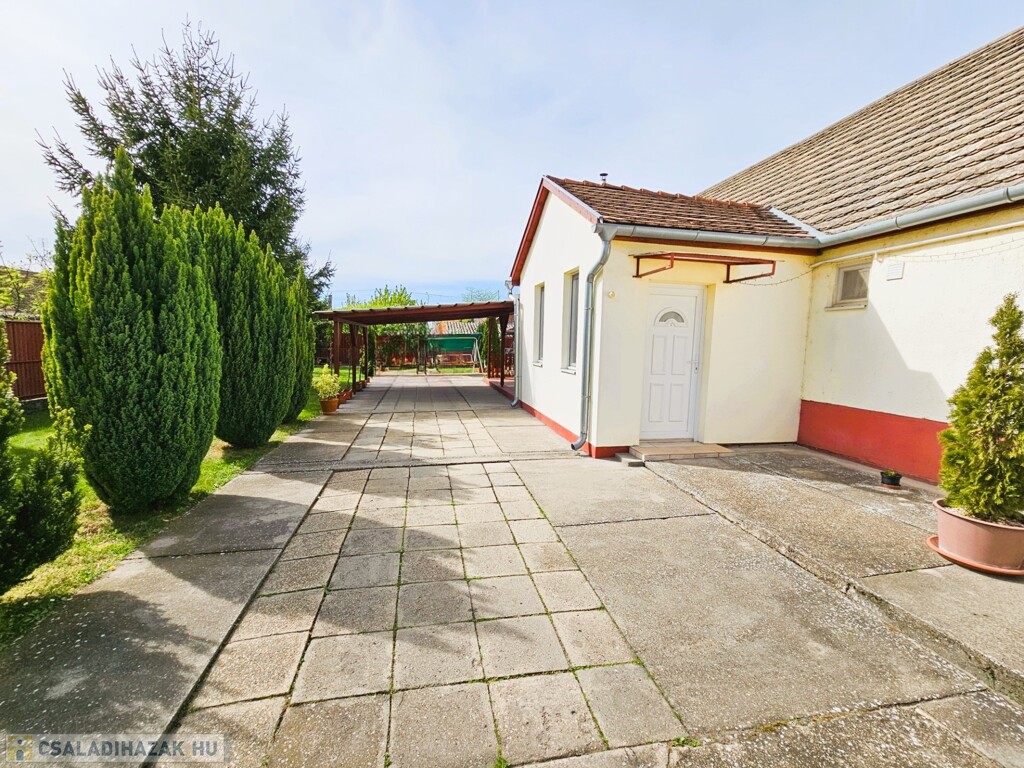 Családi ház 100 m2 lakóterületű, 506 m2 telekterületen, csendes utcában helyezkedik el. Ház vegyes falazatú, amelyben kialakításra került: 3 szoba, gardróbszoba, konyha, étkező, fürdő és spájz.