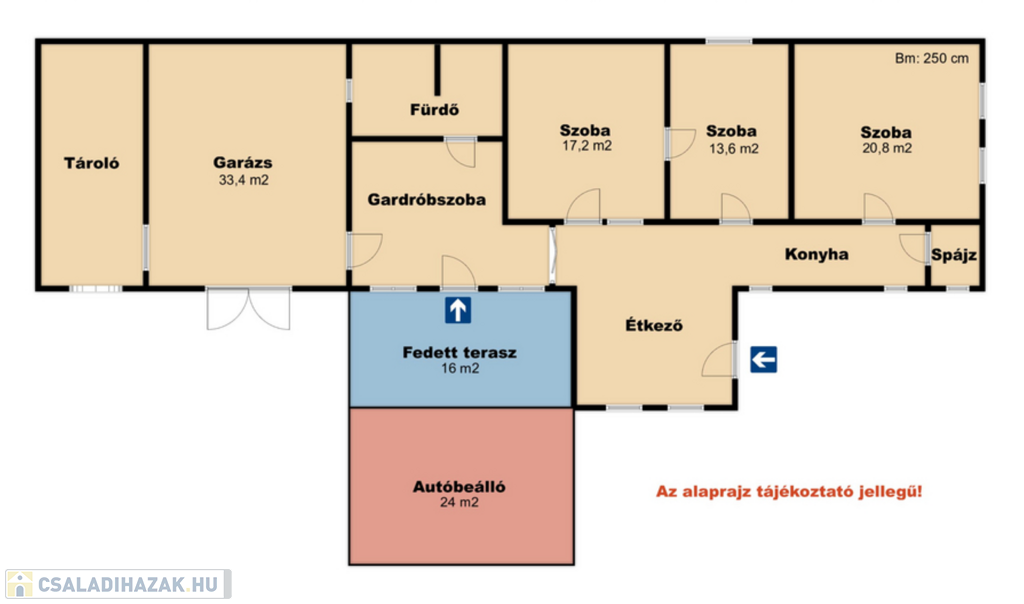 - Parkolás: garázs (33 m2) és autóbeálló (24 m2)