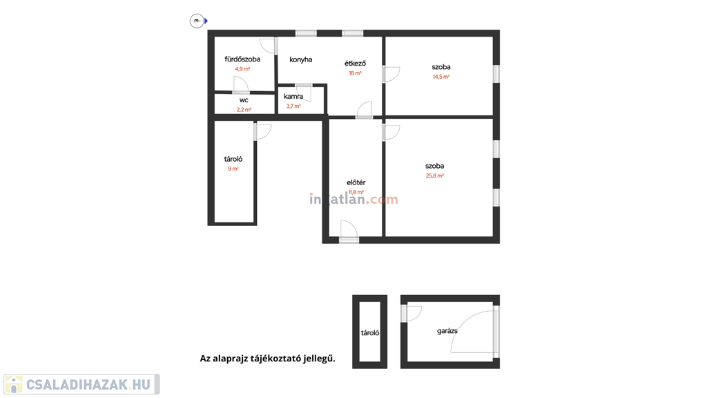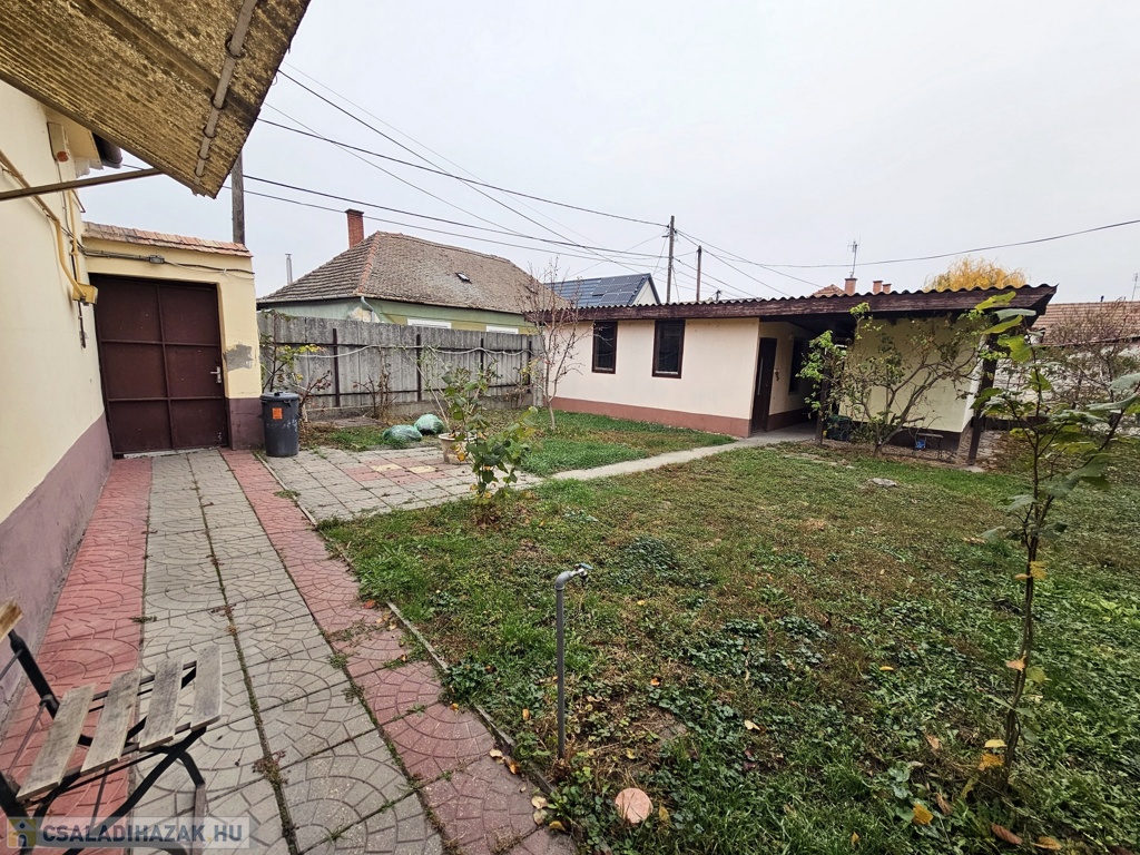 A gondozott, 338 nm-es udvar kapuján belépve a jobb oldalon található a kétszobás ház, ahol a cserépkályha melege télen is otthonossá varázsolja a nappalit és a hálót. A tágas konyha-étkező ideális hely a közös családi étkezésekhez, a spejz pedig praktikus tárolóként szolgál. A modern zuhanykabinos fürdőszoba és a külön mellékhelyiség a kényelmet szolgálja. Az udvaron a garázs mellett két tároló helyiség biztosít elegendő helyet minden szükséges eszköznek. A kertben bőségesen termő barack- és körtefa és szederbokor is található