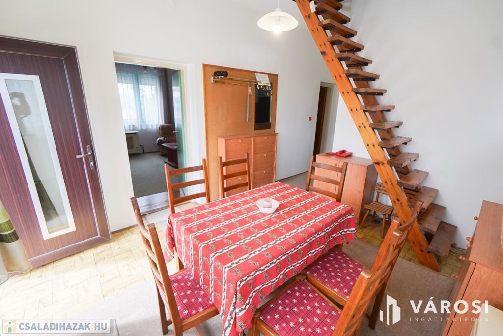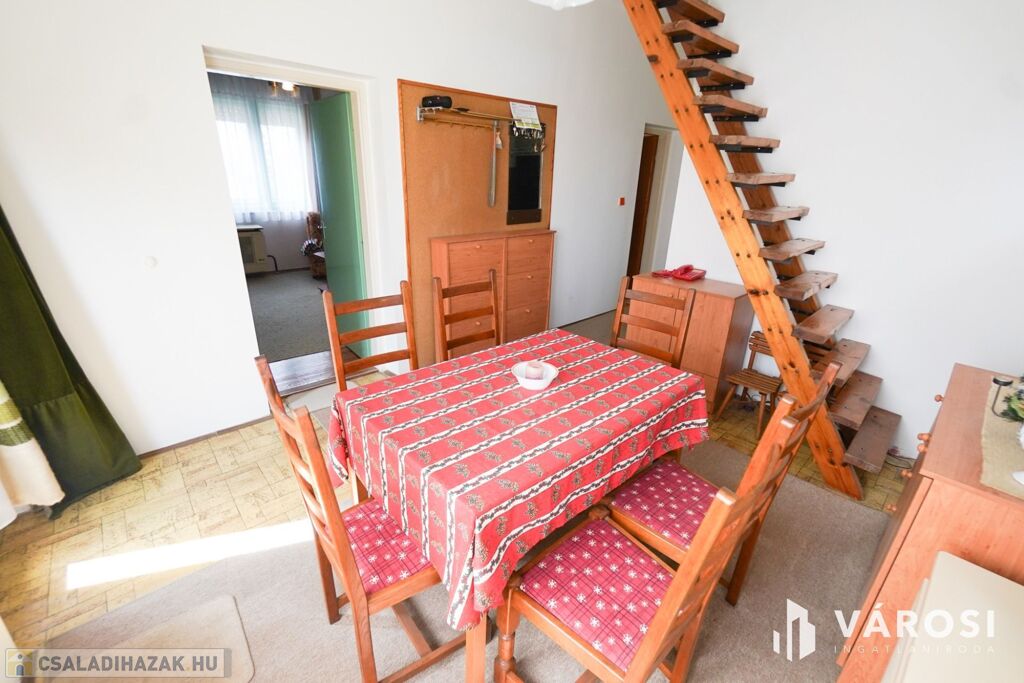 A ház 3 szinten helyezkedik el melyekből a földszinti és a tetőtéri egység belső lépcsővel össze lett kötve.