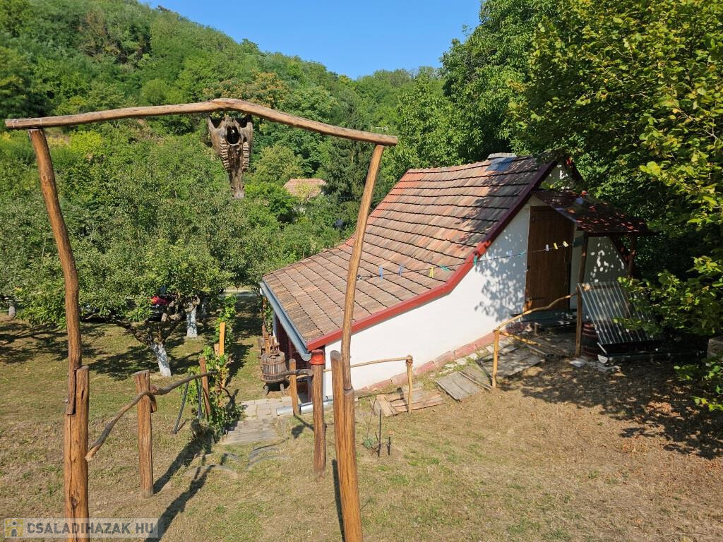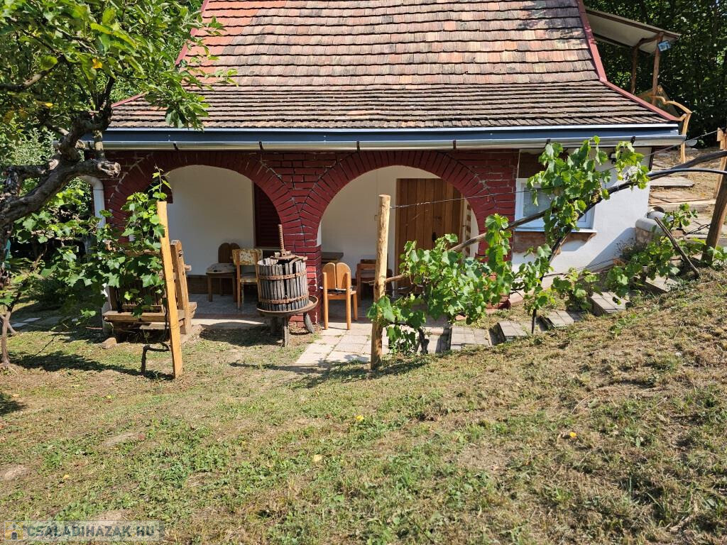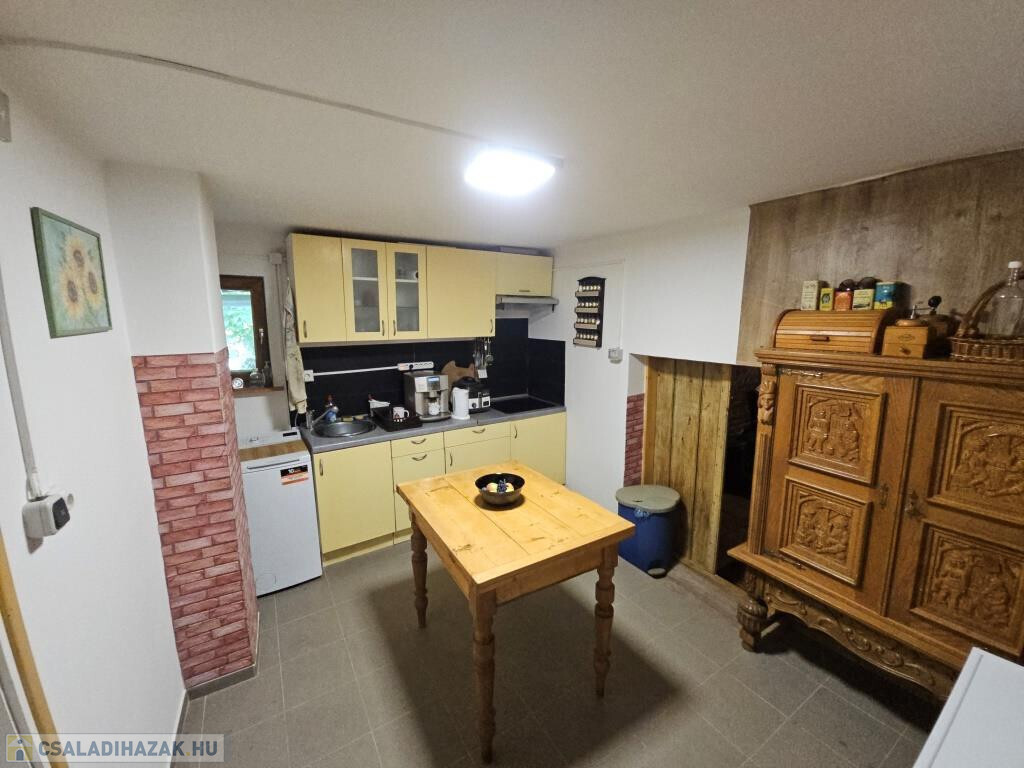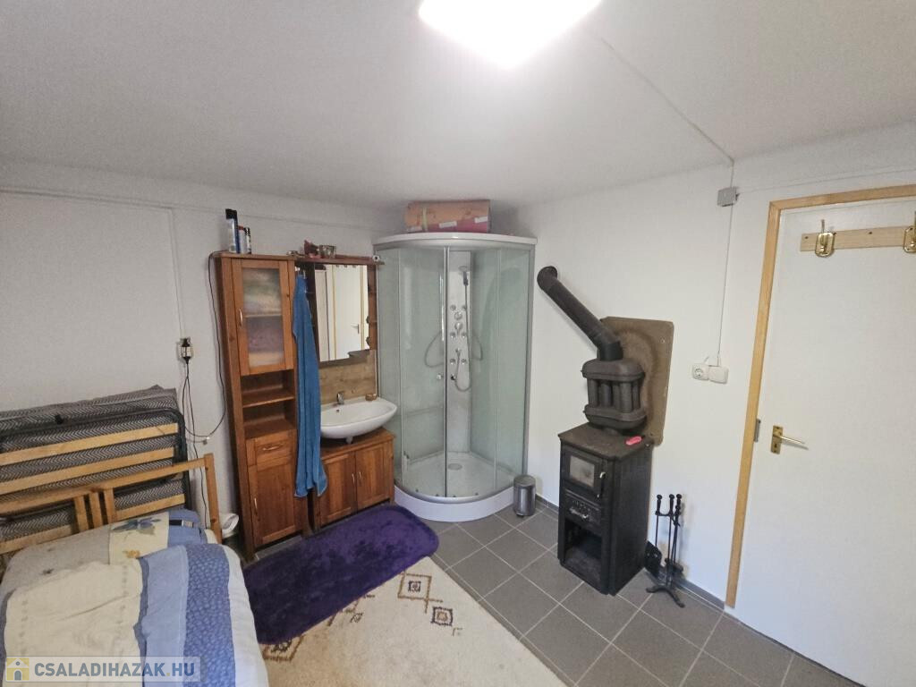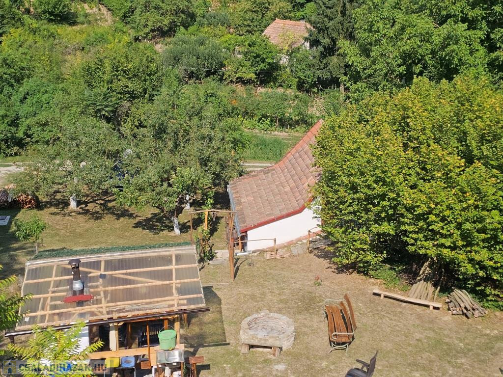 Kaposkeresztúr és Baté között a hegyen kínáljuk megvételre ezt a zártkerti házat csodálatos természeti környezetben. Kétszintes, nem nagy, de minden megvan benne, ami szükséges, akár állandó lakhatásra is alkalmas. Lent a fedett terasz köti össze a kertet a belső térrel, innen mehetünk be a házba. A konyhába lépünk, ahonnan jobbra a pincébe juthatunk, balra az egyik szobába. Itt, a szoba sarkába állították be a zuhanykabint és egy mosdót. A másik szoba a padlástér beépítésével fent lett kialakítva, külső bejárattal. Van két tároló rész is, egyik fent a szoba előtti előtérben, a másik lent, a teraszról nyílik. A házat ízlésesen és minőségi módon felújították, kicserélték az elektromos hálózatot és a nyílászárókat, az új bejárati ajtó tölgyfából készült. A konyha és a „fürdő” minden igényt kielégít. Víz fúrt kútból áll rendelkezésre, onnan van bevezetve az épületbe, illetve a kerti zuhanyzóba. A jelenlegi tulajdonosok környezetbarát komposzt WC-t használnak. Fűteni többféle módon lehet, a fenti szobában villanyradiátorral, lent pedig van egy kályha, valamint hűtő-fűtő klíma berendezés. A lakóterület 32 m2, ehhez jönnek még a tárolók, a terasz és a pince. A telek 3900 m2-es, alsó része nagyjából sík, feljebb teraszos. A ház közelében létrehoztak még egy fedett teret egy kis kemencével, bográcsozó hellyel. Mind a ház, mind a környezete szépen gondozott, ápolt, nagyon jó hangulatú. Alkalmas szálláshelynek, hétvégi háznak, de akár ki is lehet költözni a világ zaja elöl. Autóval jól megközelíthető, de buszmegálló is 5-10 perc sétára van. Minden bútor és felszerelés marad, az ár tartalmazza ezeket!