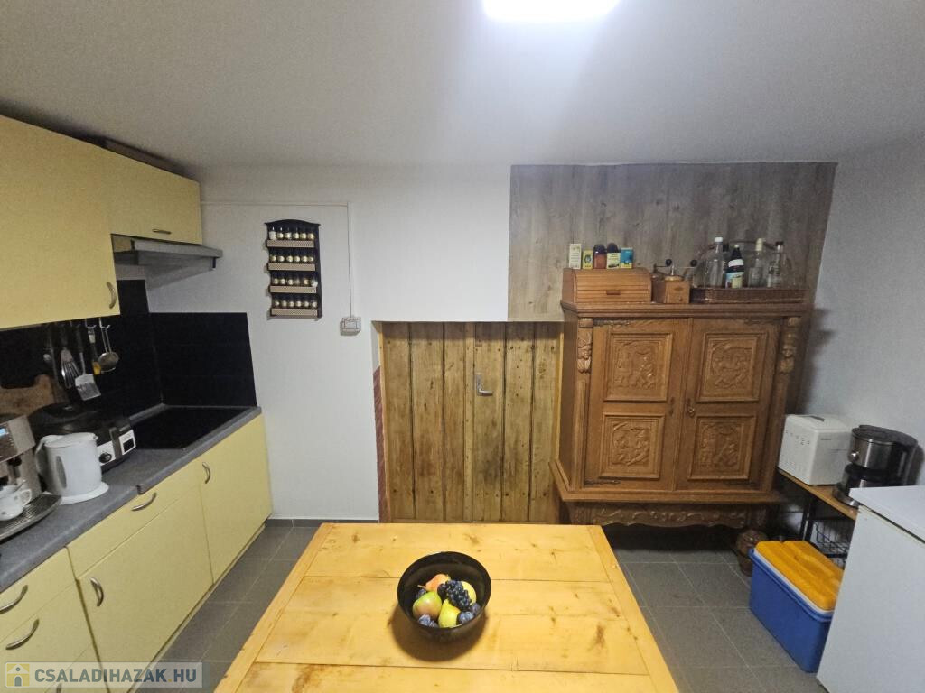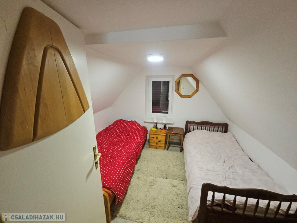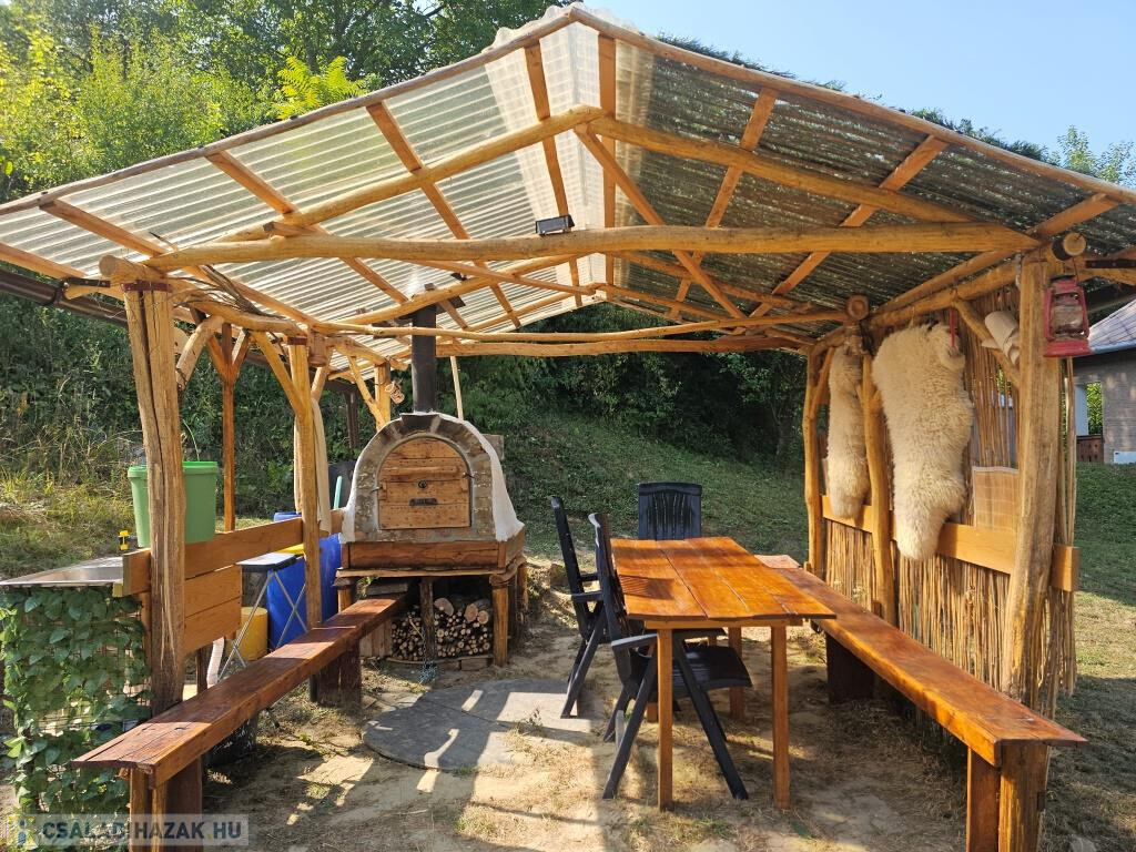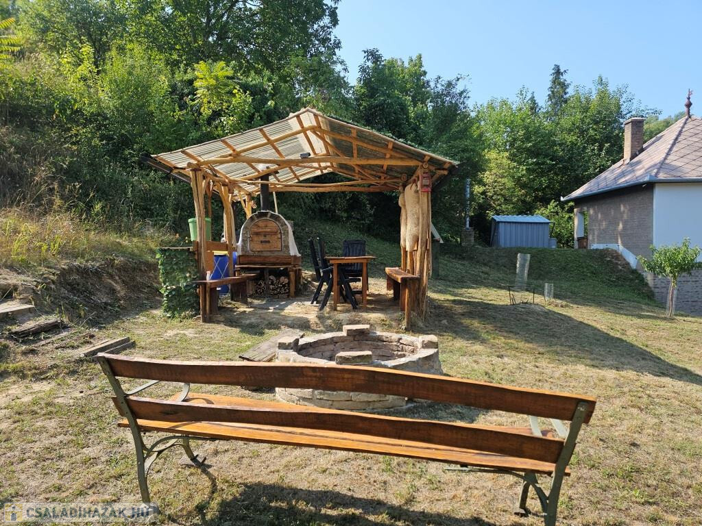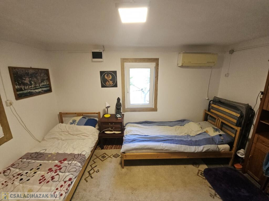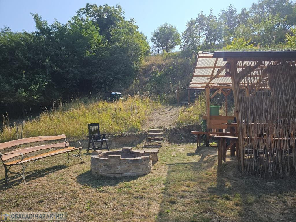Kaposkeresztúr és Baté között a hegyen kínáljuk megvételre ezt a zártkerti házat csodálatos természeti környezetben. Kétszintes, nem nagy, de minden megvan benne, ami szükséges, akár állandó lakhatásra is alkalmas. Lent a fedett terasz köti össze a kertet a belső térrel, innen mehetünk be a házba. A konyhába lépünk, ahonnan jobbra a pincébe juthatunk, balra az egyik szobába. Itt, a szoba sarkába állították be a zuhanykabint és egy mosdót. A másik szoba a padlástér beépítésével fent lett kialakítva, külső bejárattal. Van két tároló rész is, egyik fent a szoba előtti előtérben, a másik lent, a teraszról nyílik. A házat ízlésesen és minőségi módon felújították, kicserélték az elektromos hálózatot és a nyílászárókat, az új bejárati ajtó tölgyfából készült. A konyha és a „fürdő” minden igényt kielégít. Víz fúrt kútból áll rendelkezésre, onnan van bevezetve az épületbe, illetve a kerti zuhanyzóba. A jelenlegi tulajdonosok környezetbarát komposzt WC-t használnak. Fűteni többféle módon lehet, a fenti szobában villanyradiátorral, lent pedig van egy kályha, valamint hűtő-fűtő klíma berendezés. A lakóterület 32 m2, ehhez jönnek még a tárolók, a terasz és a pince. A telek 3900 m2-es, alsó része nagyjából sík, feljebb teraszos. A ház közelében létrehoztak még egy fedett teret egy kis kemencével, bográcsozó hellyel. Mind a ház, mind a környezete szépen gondozott, ápolt, nagyon jó hangulatú. Alkalmas szálláshelynek, hétvégi háznak, de akár ki is lehet költözni a világ zaja elöl. Autóval jól megközelíthető, de buszmegálló is 5-10 perc sétára van. Minden bútor és felszerelés marad, az ár tartalmazza ezeket!