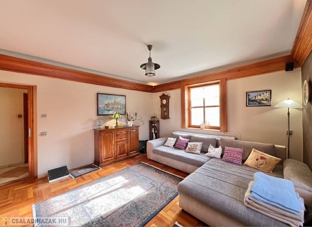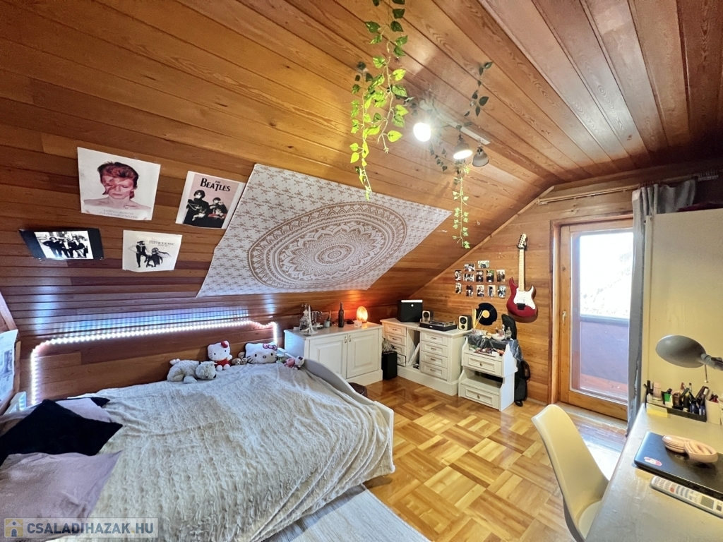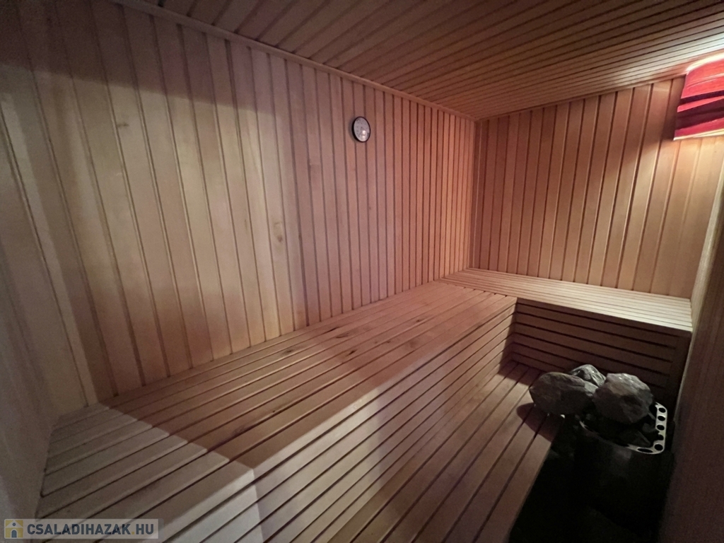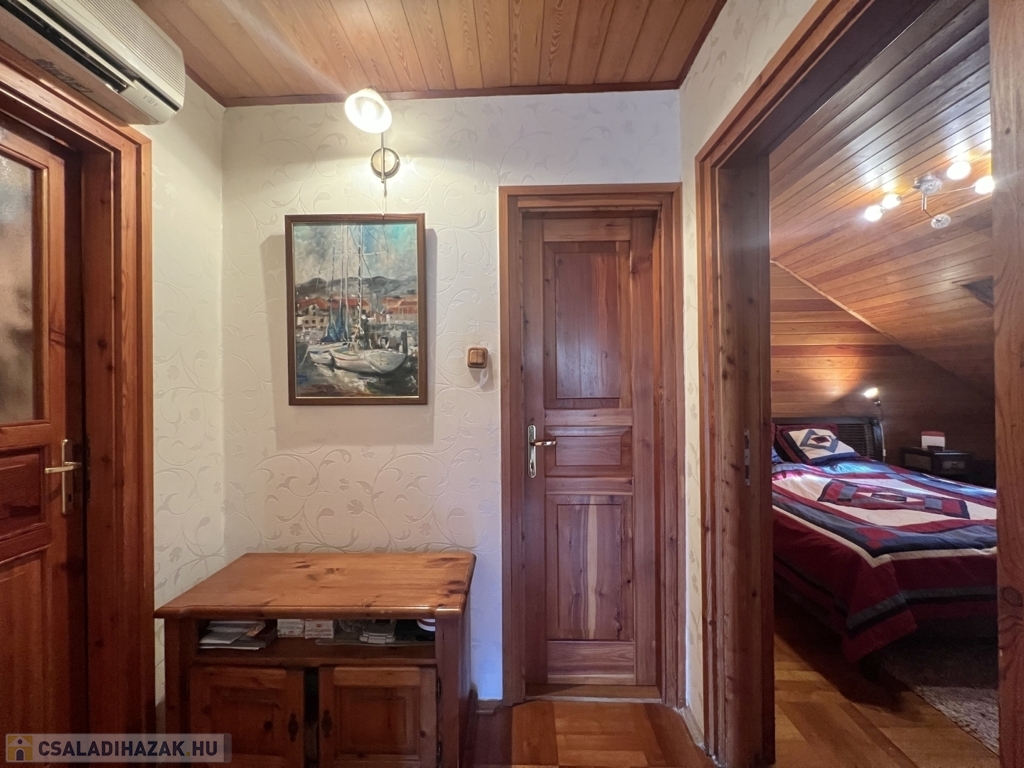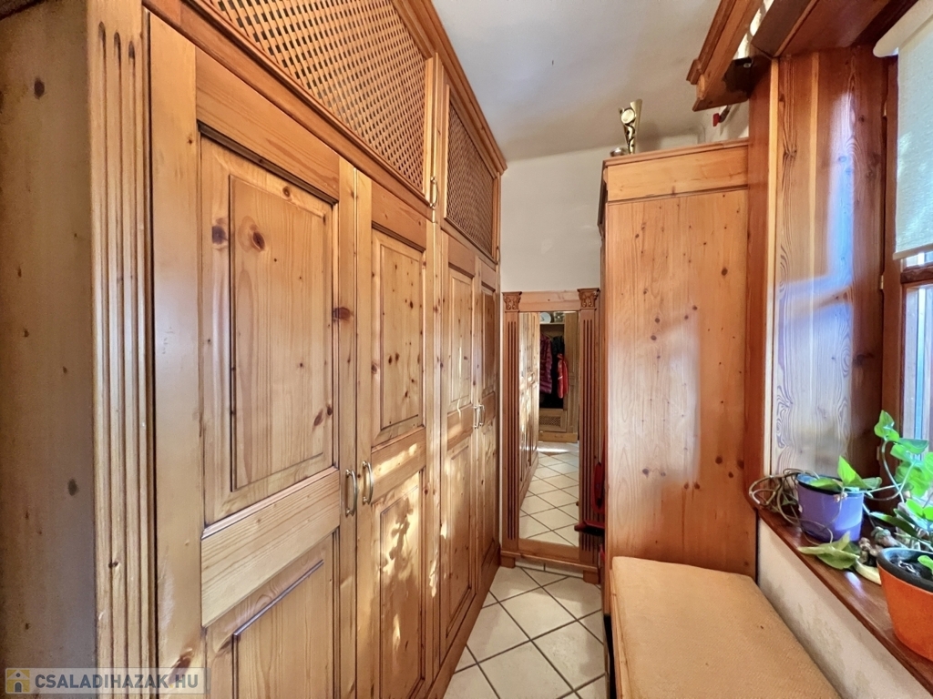 Kaposváron a Toponár városrészben - kifejezetten csendes környezetben lévő - rusztikus stílusban igényesen kialakított hangulatos 160 m2-es családi ház, különálló fedett grillterasszal, - külön lakrészként, vagy vállalkozásnak is használható - 1 szobás mellépülettel, és duplagarázzsal együtt eladó. A lakóház alsó szintjén tágas nappali, étkező, konyha-spájz, fürdőszoba-wc, előszoba, gardrób, továbbá belső udvar felé néző fedett terasz helyiségek kerültek kialakításra, valamint az épület alatt pince, kazánház helyiségek vannak. A tetőtérben 3 szoba-erkély, fürdőszoba-wc, továbbá gardrób helyiségek vannak, az épület fűtése gázközponti és vegyestüzelésű kazánnal, a melegvíz ellátása villanybojlerrel megoldott. A lakóház mögött az udvaron különálló - jelenleg irodának kialakított - melléképület található, amelyben 1 szoba, jelenleg tároló helyiség, wc, valamint szauna-mosókonyha-zuhanyzó vannak, a fűtése kályhával, gázközponti kazánnal -, valamint további igény esetén vegyestüzelésű kazánnal megoldott. Az udvarban két személyautónak alkalmas garázs, tároló-kazánház helyiségek kerültek kialakításra, illetve további gépkocsi, vagy egyéb dolgok tárolására egy 60 m2-es fedett szín is van. Telek: 2.275 m2