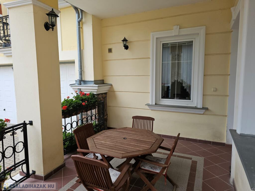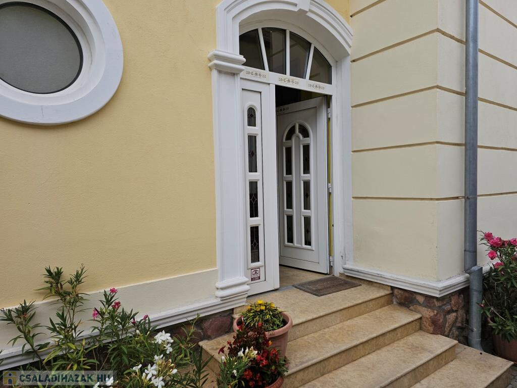 Kaposvár egyik legszebb utcájában, a Kassa utcában kínáljuk megvételre ezt az igazán igényesen megtervezett és felújított, kibővített elegáns kétlakásos polgári családiház önálló földszinti lakását a hozzá tartozó teljes telekkel. Az étkező helyezkedik el középen, ide csatlakozik a délnyugati fekvésű, kert felé néző kellemes terasz, illetve innen nyílik minden további helyiség közvetve vagy közvetlenül. Van három tágas, keleti tájolású szoba - a szélső déli ablakkal is ellátva, - fürdő zuhanyzóval és káddal, külön WC, valamint a konyha. Plusz egy háztartási helyiség, ami részben mosókonyha, részben tároló, de itt kapott helyet a kazán és a bojler is. Mindhárom szoba megközelíthető külön is, de az első és a középső át is járható. Az első, délkeleti szobának önálló bejárata nyílik a lépcsőházból is, így akár iroda funkcióra is alkalmas. A nappaliként használt középső szobában van egy üvegfalú kandalló, ami nem csupán szép és jó hangulatú, hanem hasznosan egészíti ki a cirkós fűtést. Minden külső nyílászáró SCHÜCO tip., hőszigetelt üvegezéssel, redőnnyel. A lakás alatt több részből álló pince, hátul dupla garázs és melléképület áll rendelkezésre, ezek összesen 209 m2-et tesznek ki (lakótér: 128,54 m2, terasz: 13,31 m2, pince: 28,14 m2, garázs és tárolók: 39 m2). A telek 630 m2, a garázsokig térkövezve, egyébként gyeppel borított, szépen parkosított. Mind a lakás, mind a kert kiváló állapotban vannak. A 3 fázis vételezése mind az udvaron, mind a garázsban rendelkezésre áll. Elsősorban Pécsen vagy környékén építési telket, családi házat értékegyeztetéssel beszámítunk kizárólag olyan helyen, ahol van vezetékes internet.