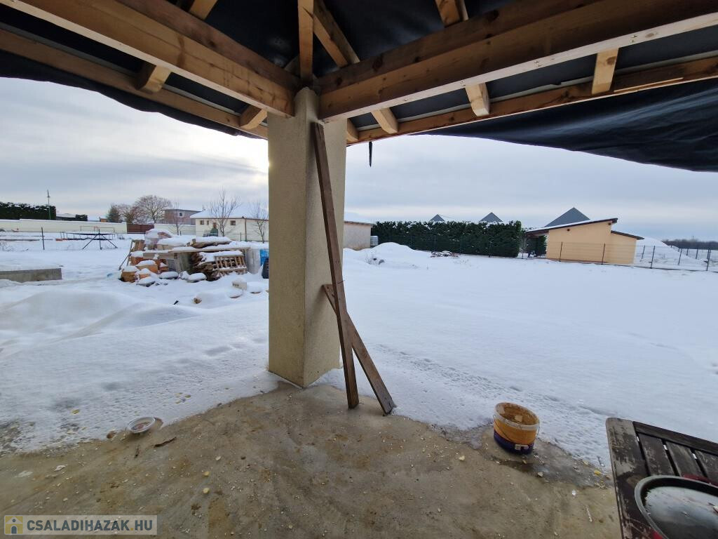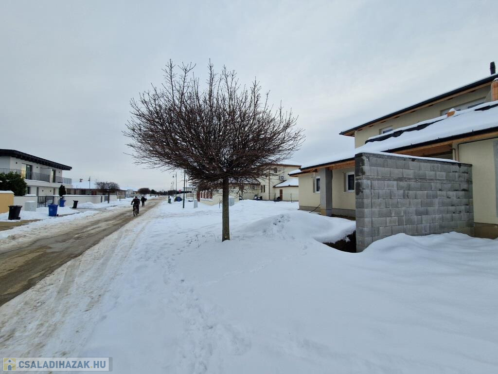 Kaposváron, a keresett kisgáti városrészben, a Wass Albert utcában kínáljuk megvételre ezt az ikerházat, pontosabban annak jobb oldalán található lakrészét. A lakás praktikus elosztású, teljesen elkülönül a másiktól, csupán egyetlen közös falszakaszuk van. Belső kétszintes, alapterülete 147 m2, készültségi foka kb. 90 %-os. Lent előtér fogad, innen nyílik jobbra egy háló, amihez zuhanyzós fürdő csatlakozik (ezek teljesen elkészültek, használhatók), szemben pedig a nappali helyezkedik el. A nappalival egy légtérben, de attól jobbra „L” alakban az étkezős konyha lett kialakítva, és kint, a két helyiség ölelésében félig fedett terasz terül el, mely szerves része mind a benti, mind a kinti élettérnek. Az emeletre kényelmes lépcső vezet az előtérből, fent a közlekedőből nyílik három háló, az egyik erkéllyel, illetve még egy fürdő. A földszinten a bejárattól balra közel 20 m2-es tároló van kialakítva, ami akár garázs is lehet. A teljes telek 1643 m2-es, sík.