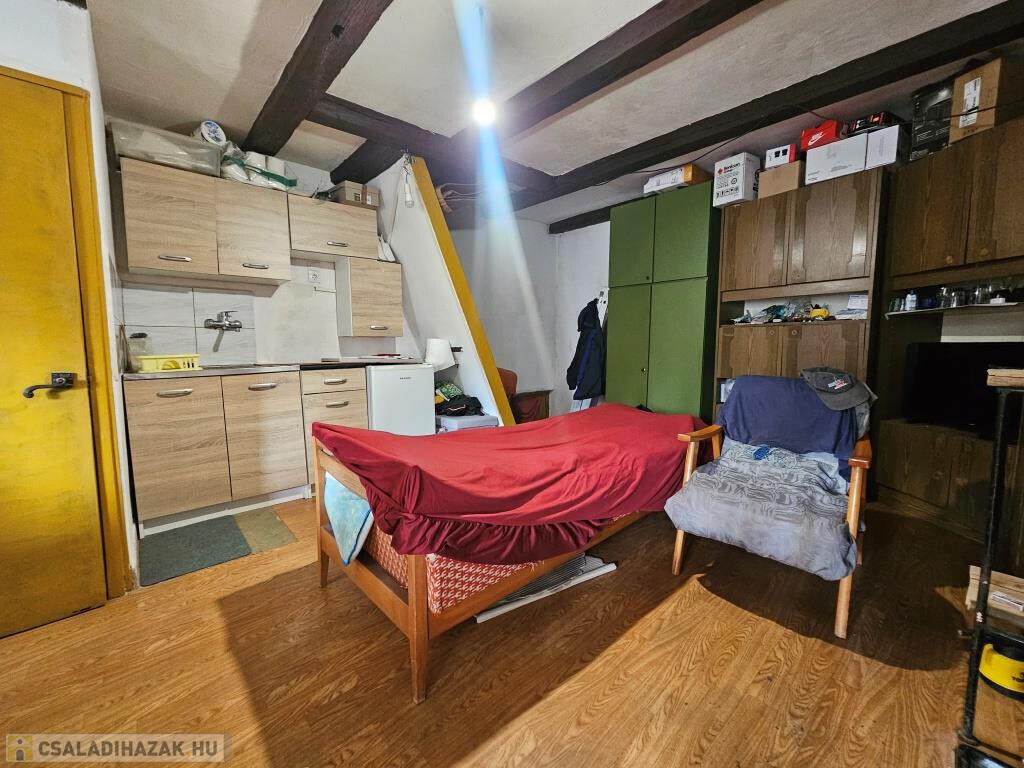 Kaposváron, a Százszorszép utcában kínáljuk megvételre ezt a zártkerti telken épült, állandó lakhatásra is alkalmas, kétszintes plusz pincés hétvégi házat részben felújítva. A felújítás során többek között a földszinten kialakítottak konyharészt új konyhabútorral, valamint leválasztottak egy kis zuhanyzós fürdőt WC-vel, és szigetelték a födémet. Itt, a szoba-konyha-étkező szerepet betöltő tágas helyiségben duruzsol a kályha hideg időben. Innen vezet le a klasszikus, téglázott boltíves pincébe pár lépcső. A korábbi veranda be lett építve műanyag keretes ablakokkal és bejárati ajtóval, ez most az előtér és a nappali, ahonnan szép a kilátás a kertre. Az emeleten két kisebb szoba, illetve tároló kapott helyet, valamint van egy erkély is. A lakótér lent 30, fent 20 m2-es. A házon nagyon sok munkát elvégeztek már, de innentől az új tulajdonos a saját képére formálhatja tovább. A telek 800 m2-es, az utcától lejtős, teraszos kialakítású, csodálatos panorámát nyújt a völgyre. Több új gyümölcsfa és szépen kialakított konyhakert ad friss zöldséget, gyümölcsöt, és természetesen az ezzel járó örömet, valamint kellemes foglalatosságot egyaránt. Az utca murvával szórt, jól járható. Buszmegálló kb. 300 m-re, azaz 4-5 perc sétára van.