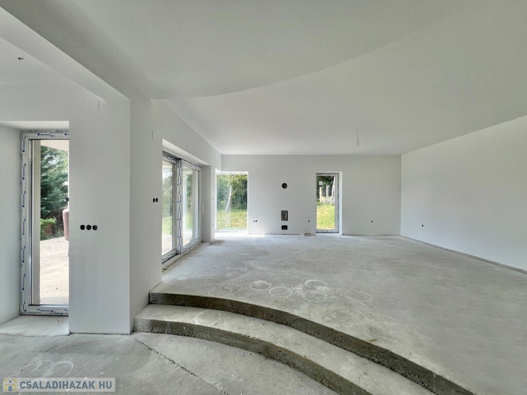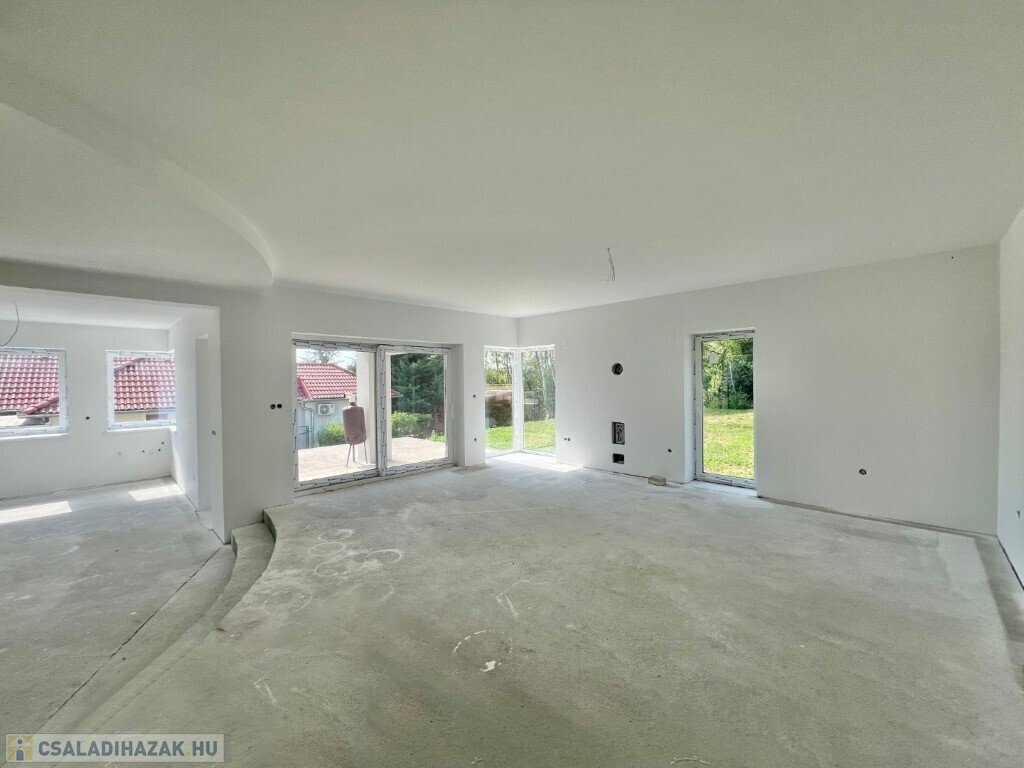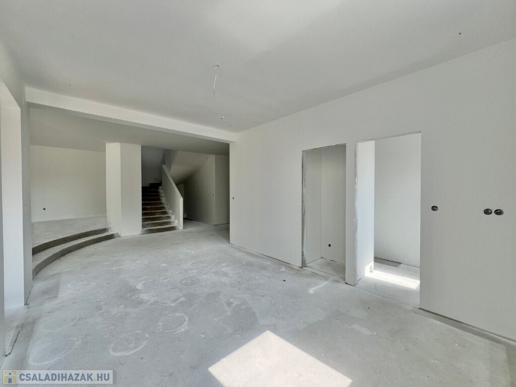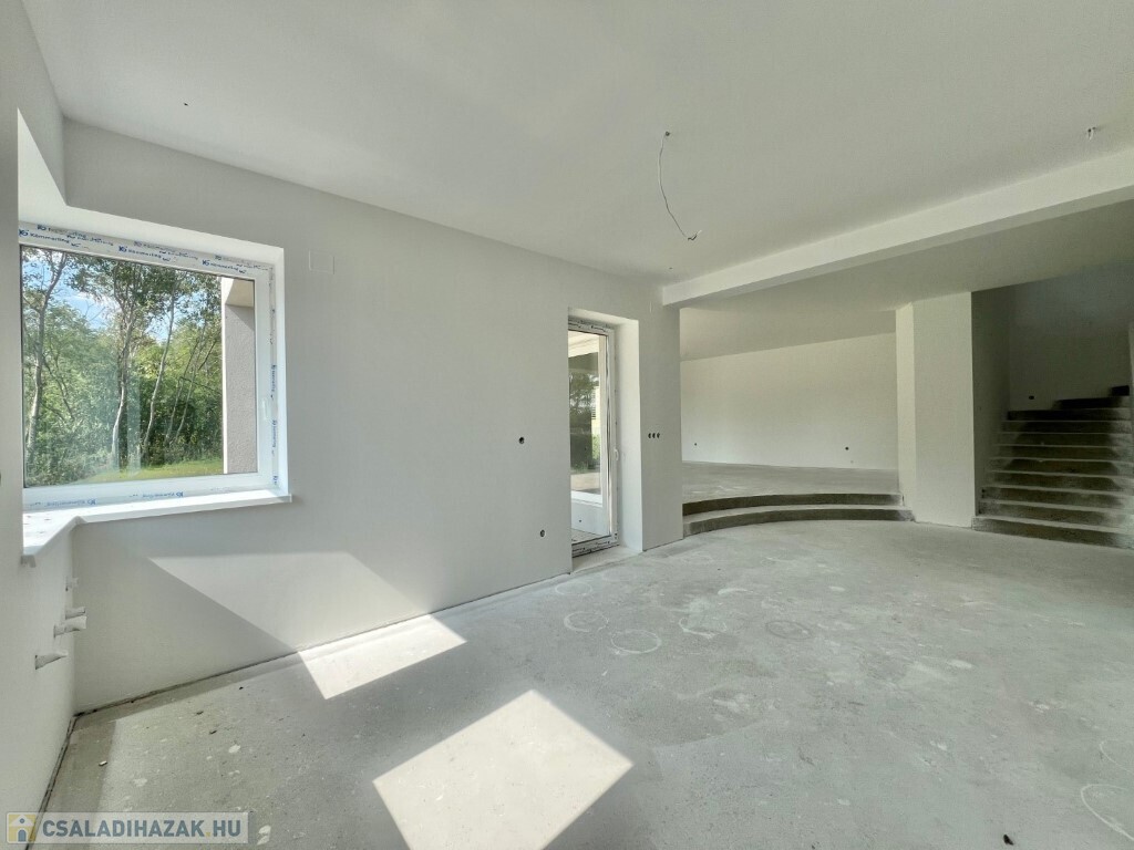 Kaposváron a Rómahegyen, kifejezetten csendes, modern környezetben található - új építésű, 85%-os készültségű -, 384 m2-es, impozáns családi ház eladó. A lakóház alsó szintjén 2 autó részére tágas garázs, elegáns előtér-nappali-konyha, kamra, 1 szoba fürdőszobával, továbbá egy nagy mosókonyha-zuhanyzó-wc és egy fedett terasz kerültek kialakításra. Az emeleten előtér, 2 szoba fürdőszobával - az egyikhez gardrób is tartozik, illetve további 2 szoba, fürdőszoba-wc, egy udvar felé néző 9 m2-es terasz és egy a völgyre, a lakóparkra néző exkluzív méretű 44 m2-es terasz van, ahová jakuzzi is elhelyezhető. Az épületben jelenleg a gépészet nincs kialakítva, tervezve hőszivattyús rendszerrel van tervezve. Telek: 891 m2. Az ingatlan vételárába a tulajdonos lakást Kaposváron, a Balaton parton, vagy Budapesten beszámít!