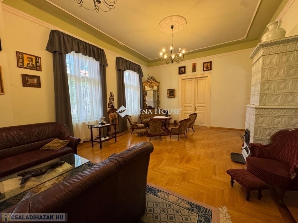 ELEGANCIA ÉS MINŐSÉG 440NM2-EN Kaposvár frekventált részén!Amennyiben egy ingatlan kapcsán a luxus, illetve a sablonos belső dizájn helyett magas minőséget és az eleganciát keresi, akkor a legjobb helyen jár.A belső kialakítás során a már fent említett két szempont volt a legfontosabb és minden négyzetcentiméter kialakítását gondos tervezés előzte meg.Amit az ingatlanról tudni kell:Rendezett, gondozott, csendes, hangulatos telek, melyen egy gyönyörű pálinkafőző helyiség került kialakításra.A telken ezen felül található még egy önálló garázs is.Az ingatlan alatt egy nagyon igényesen kialakított 44 nm2- es boros pince található.A tetőtér 202 nm2 -es, teljesen beépíthető.Amit az ingatlanról még tudni ingatlanról:Hatalmas, cserépkályhával ellátott napfényes nappali.4 különálló szoba3 fürdőszobaTágas konyha, kamrával.Az ingatlan utcafronti homlokzata műemlékvédelem alatt áll!Irányár: 299.000.000 FTAZ INGATLAN MEGTEKINTÉSE KOMOLY ÉRDEKLŐDŐ ESETÉN, ELŐZETES EGYEZTETÉS UTÁN LEHETSÉGES.AMENNYIBEN KÉRDÉSE VAN, KÉREM KERESSEN BIZALOMMAL!ELEGANCE AND QUALITY ON 440 SQM IN A PRIME AREA OF KAPOSVÁR!If you are looking for a property that offers high quality and elegance instead of typical luxury or generic interior design, this could be the perfect place for you.The interior was designed with these two key aspects in mind: elegance and quality. Every detail was carefully planned.Key features of the property:Well-maintained, quiet, and charming gardenA beautiful room designed for pálinka (fruit brandy) distillationSeparate garage on the propertyStylish 44 sqm wine cellar beneath the houseAttic space of 202 sqm that can be fully convertedAdditional highlights:Large, sunny living room with a traditional tile stove4 separate bedrooms3 bathroomsSpacious kitchen with a pantryThe front of the house is under historical protection!Asking price: 299,000,000 HUFViewing is possible for serious buyers by appointment only.If you have any questions, please feel free to contact me!