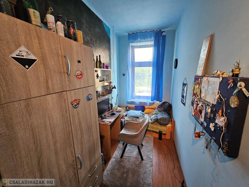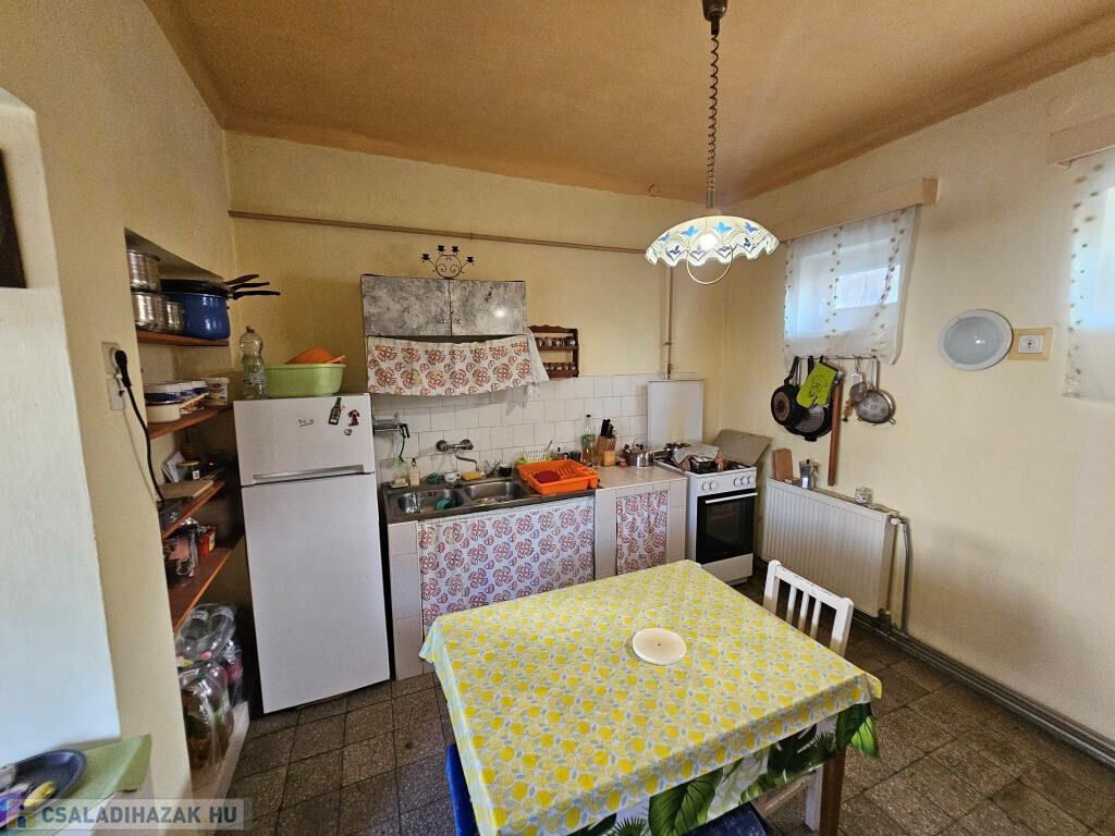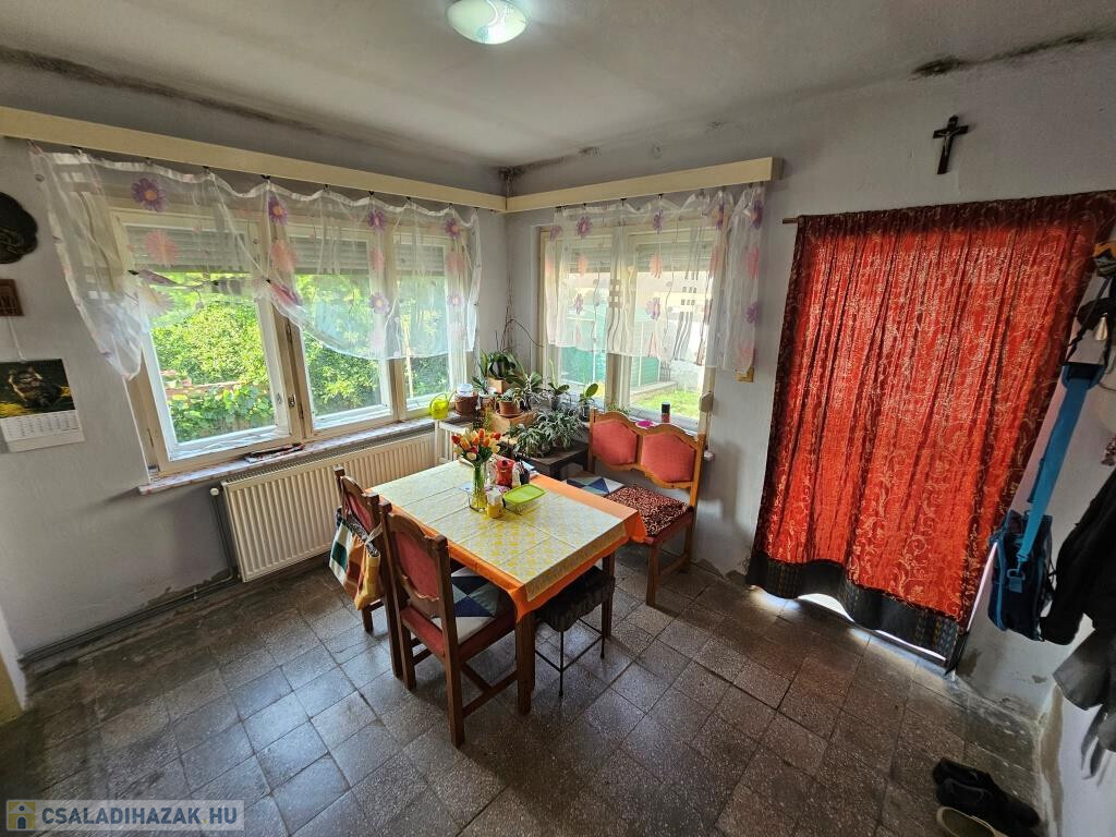 Kaposváron, a Katona József utcában kínáljuk megvételre ezt a családi házat. Lakóterülete 80 m2, ahol ki van alakítva egy nagyobb és három kisebb szoba, kádas fürdő, konyha, és azzal egy légtérben az étkező-nappali-előtér. Ide vezet fel pár lépcső, ide lépünk be az udvarról, ez az otthon központi része. Innen közlekedőn keresztül érhető el a négy külön bejáratú háló, így praktikusan elkülönül a közösen használt tér és a privát szféra. A ház ablakainak nagy része hőszigetelt, csak az étkező két ablakát nem cserélték még ki. A tető betoncseréppel fedett, jó állapotú. Egyebekben a ház felújításra szorul. Fűtése központi vegyes tüzelésű kazánnal megoldott, meleg vizet villanybojler ad. A telek 583 m2-es, parkosított, fákkal, virágokkal ültetett. Elöl az udvarba akár három személygépkocsi is befér. Van fatároló, és egyéb tároló. Az igény szerinti munkák elvégzése után remek családi fészek válhat belőle kellemes terasszal, kerttel.