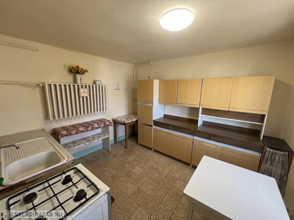 Kaposváron a Kálvária utcában, csendes környezetben lévő 2 szintes, külön lakórésszel és garázzsal rendelkező, 152 m2-es – a képeken látható műszaki állapotú - családi ház eladó. A lakóház alsó szintjén – utca felől megközelíthető - 15 m2-es garázs, továbbá tároló, kazánház helyiségek, illetve különálló 34 m2-es, belső udvar felé nyíló lakórész, amelyben 1 szoba, előtér, konyha-étkező, fürdőszoba-wc, tároló helyiségek kerültek kialakításra. Az épület felső szintjén tágas előtér, 3 szoba, konyha-étkező, kamra, fürdőszoba, wc helyiségek vannak, a fűtése gázközponti kazánnal megoldott, a meleg víz ellátást villanybojler biztosítja. Az udvaron további szerszámok tárolására alkalmas kisebb tároló-melléképület áll. Telek: 710 m2 Energetikai besorolás: F