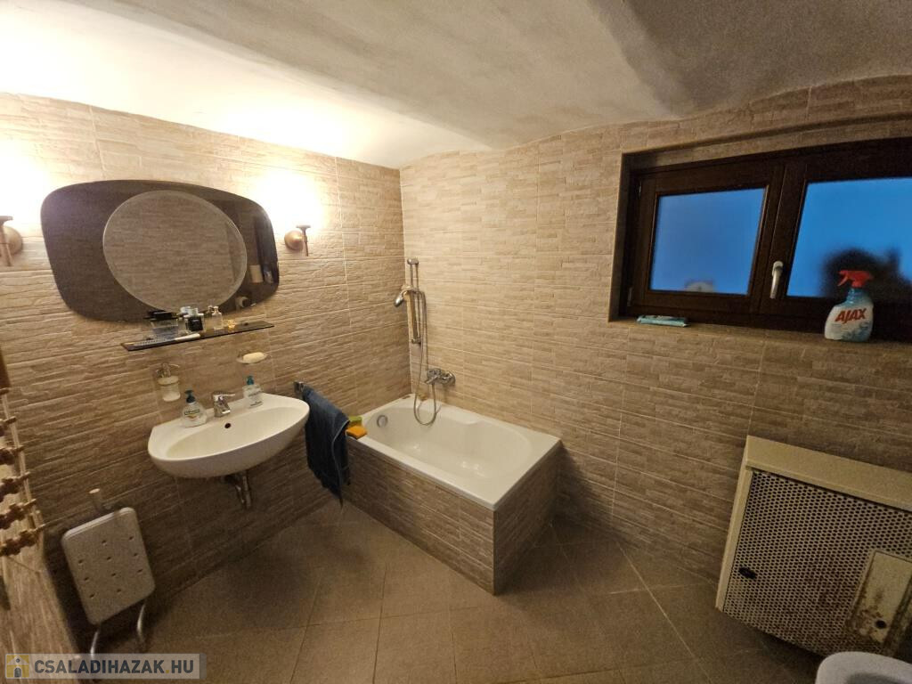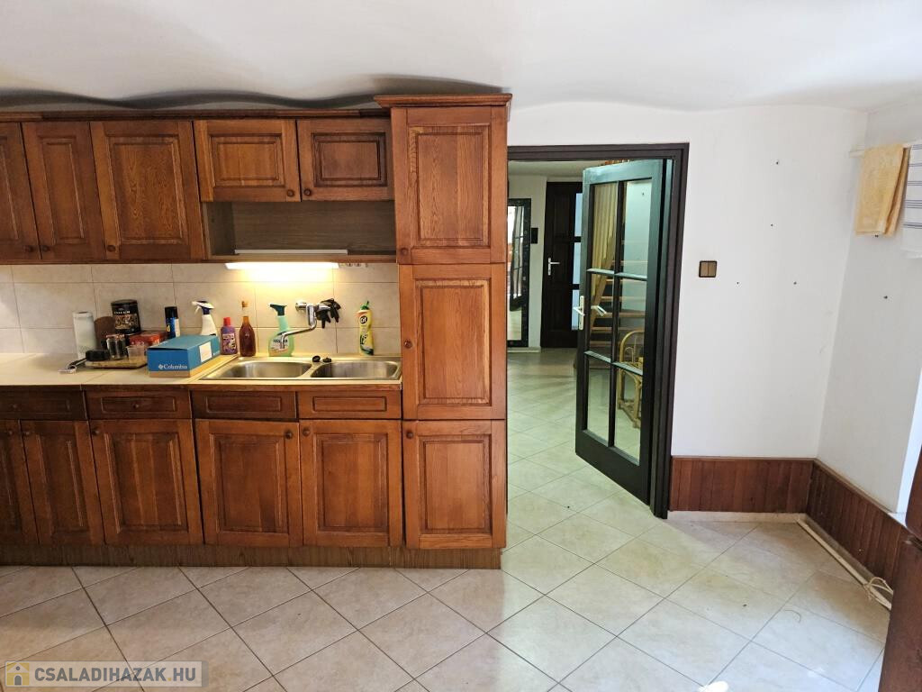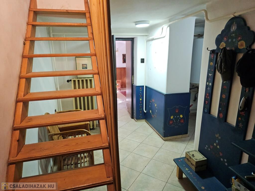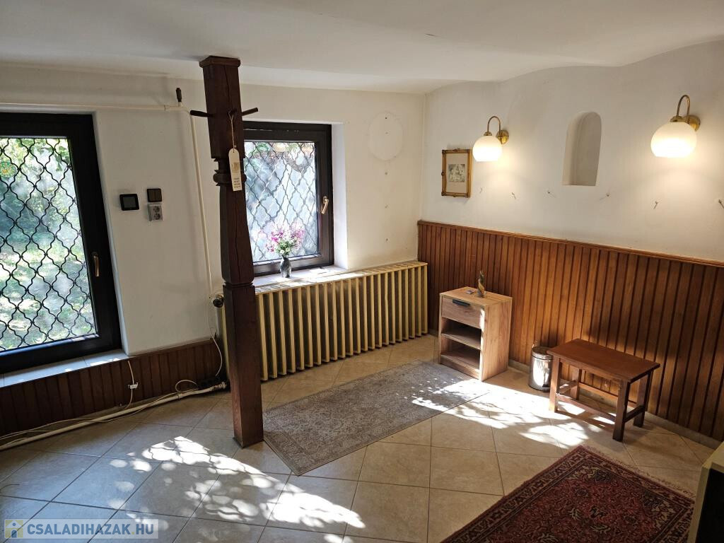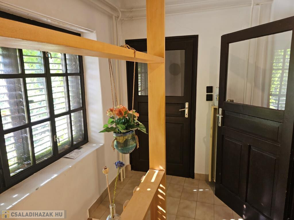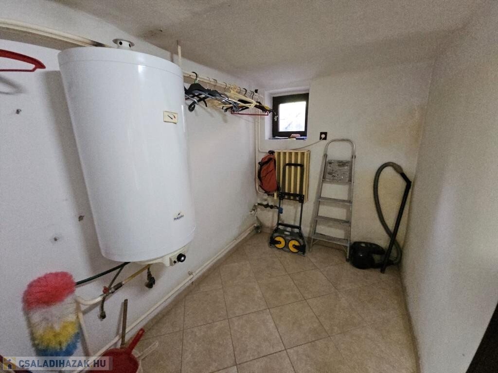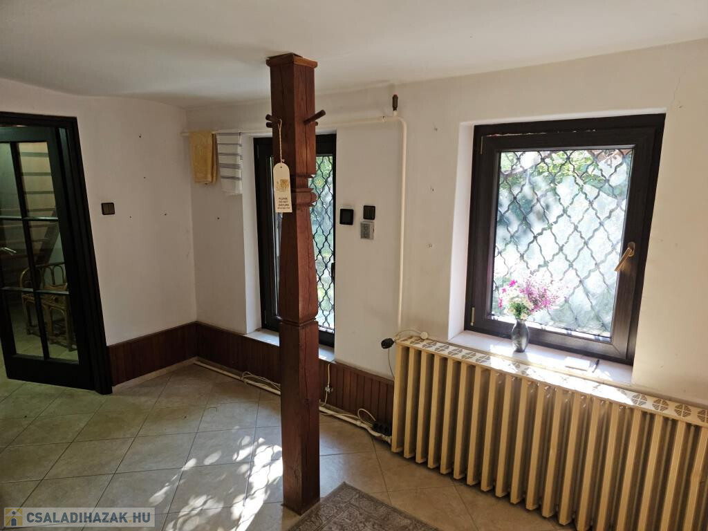 Kaposváron, a Pázmány Péter utcában kínáljuk megvételre ezt a nagyon jó helyen álló családi házat. Belső kétszintes, lakóterülete 75 m2, nem túl nagy, nem túl kicsi. Az utcáról - a végén a kert felé nyitott - folyosón keresztül jutunk a bejárati ajtóhoz. Az előtérbe lépünk, innen nyílik szemben a nyugati fekvésű, barátságos, napfényes nappali-étkező, ami egylégterű a konyhával. Praktikusan itt van a kamra is. Az előtér oldalsó nyúlványa egy tároló rész, ide csatlakozik a kádas fürdő a WC-vel. Az emeletre kényelmes és szép falépcső vezet, fent a közlekedőből nyílóan két külön bejáratú, tágas, keleti tájolású szoba lett kialakítva. A fűtés a fürdőben konvektorral megoldott, a ház többi részén cirkós, radiátoros, és az egyik szobában légkondi berendezés is van. A külső nyílászárók hőszigeteltek. A ház mögött romantikus kert bújik meg kellemes árnyad adó fákkal, bokrokkal és egy kis füves résszel, ahová jó kijönni, megpihenni. Tartozik mindehhez egy 16 m2-es utcai bejáratos garázs távirányítós kapuval. A telek 317 m2-es. Összességében nagyon jó hangulatú és barátságos mind a ház, mind a kert. Az utca nyugodt, a szomszédos házak szinte mindegyike fel lett újítva, így a környék rendezett, vonzó.