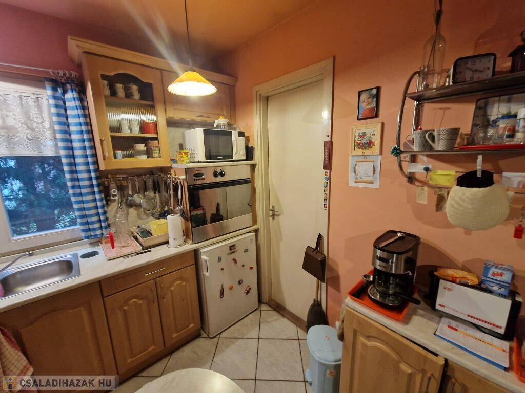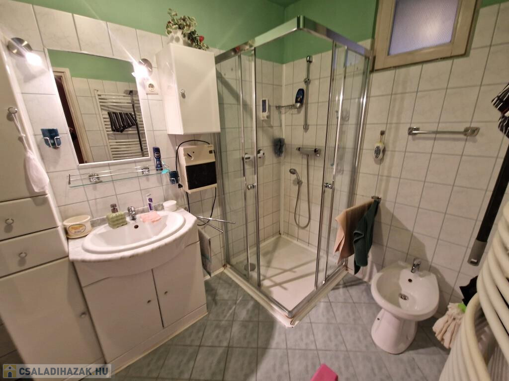 Kaposváron, a Patak soron kínáljuk megvételre ezt a 2000-ben épült családi házat. Lakóterülete 68 m2, amit kiegészít a 16 m2-es garázs, és hátul a fedett terasz. Bejárata a teraszon és a szélfogón át vezet a tágas étkezős nappaliba, ami egylégterű a konyhával. Ez a közös élettér, az otthon szíve. Innen nyílik két hálószoba, a fürdő zuhanyzóval, káddal, bidével, a külön kialakított WC, valamint egy háztartási helyiség, ahol jól elfér a kazán, a mosógép, és még sok egyéb holmi. A ház praktikus elrendezésű, könnyűszerkezetes, kívülről szigetelt, külső nyílászárói szintén hőszigetelt üvegezéssel készültek, fűtése cirkós. A gázkazán újnak tekinthető, 2022-ben cserélték. A garázs elöl, az utcáról könnyen megközelíthető, a terasz hátul déli, délnyugati tájolású, intim elhelyezkedésű, kellemes ott tartózkodást tesz lehetővé. A telek 700 m2-es, sík, szépen parkosított, karbantartott. Környezete nyugodt, csendes. Kisebb család számára kiváló lehetőség!