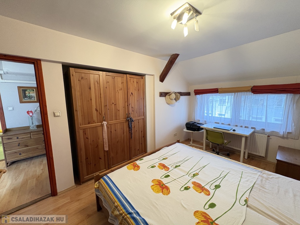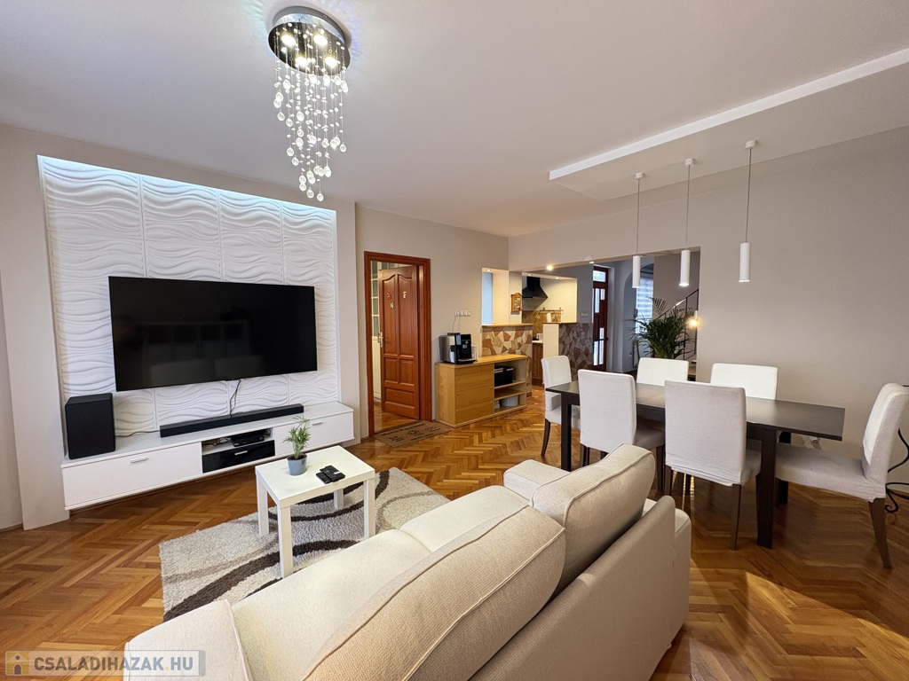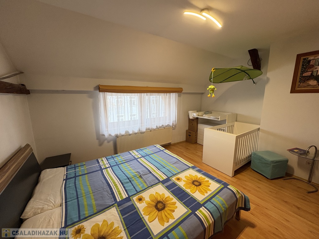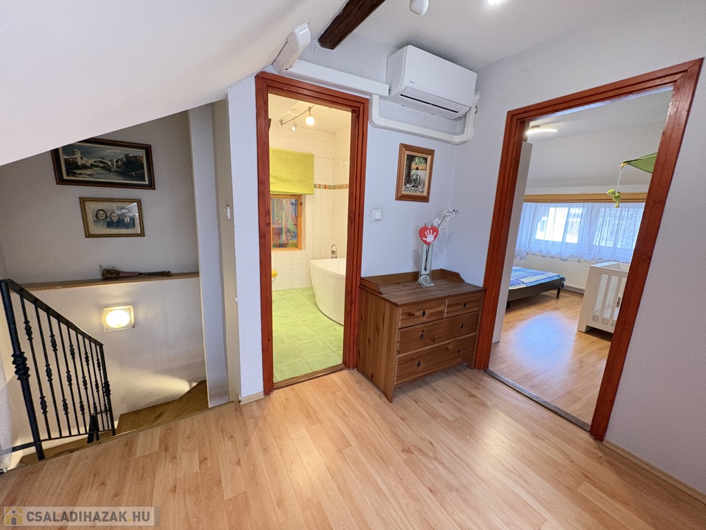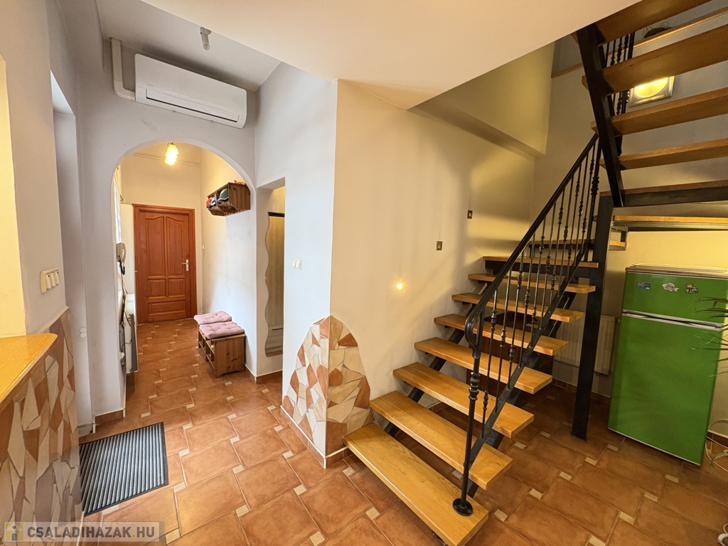 Kaposváron a Hársfa utcában - a kórház közelében - 140 m2-es, 2010-ben felújított 2 szintes házrész eladó. Az épület alsó szintjén tágas nappali-étkező, előszoba-közlekedő, konyha, kamra, 2 szoba, fürdőszoba, wc helyiségek találhatóak. A felső szinten – a tetőtérben - előtér, további 2 szoba, fürdőszoba-wc helyiségek kerültek kialakításra. Az épület fűtése és melegvíz ellátása kombi gázkazánnal megoldott, továbbá a szobákban a tulajdonos Midea típusú légkondicionálókat szereltetett, valamint a tetőre napelemeket telepíttetett. Az ingatlanhoz továbbá tartozik az udvaron egy hangulatosan kialakított terasz, illetve a melléképületben tároló rész is. Telek: 343 m2