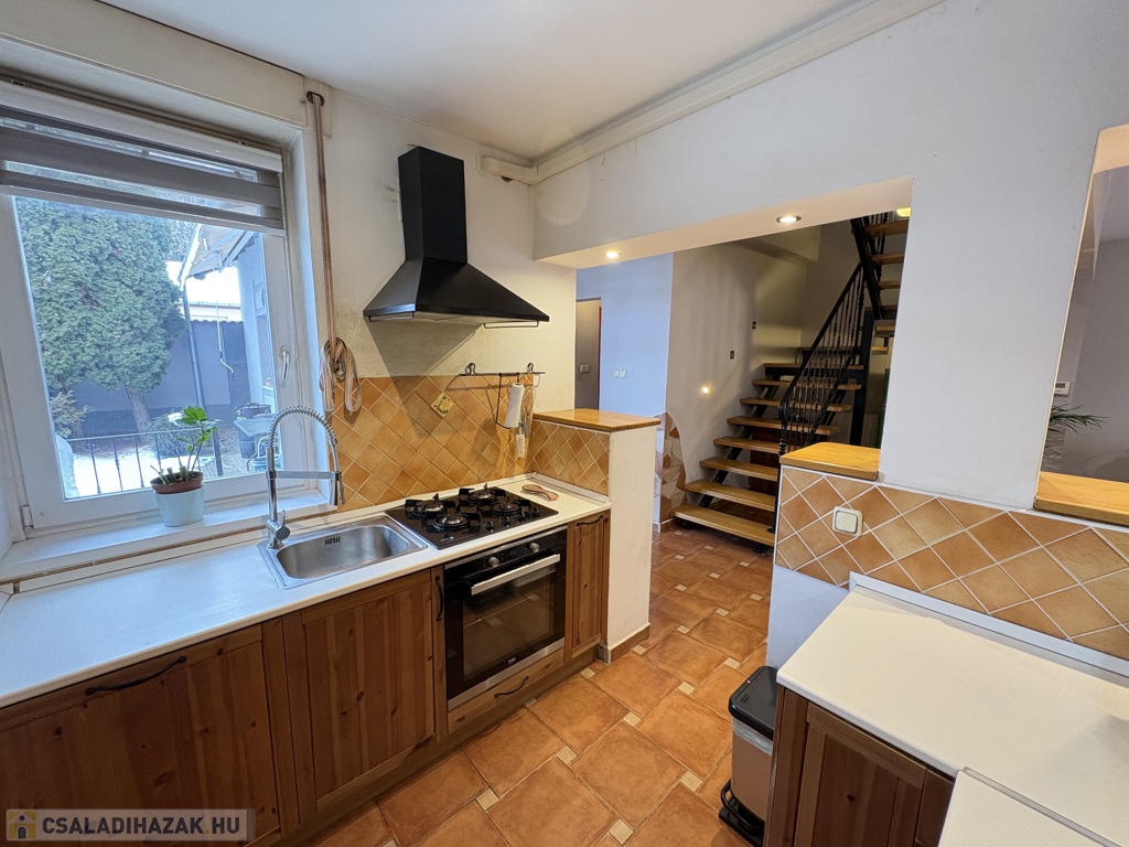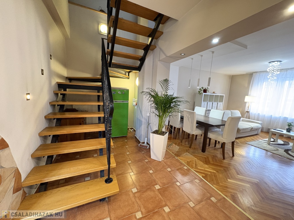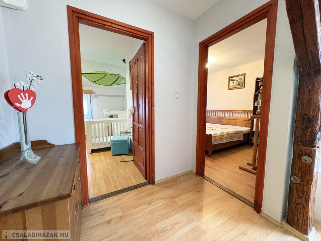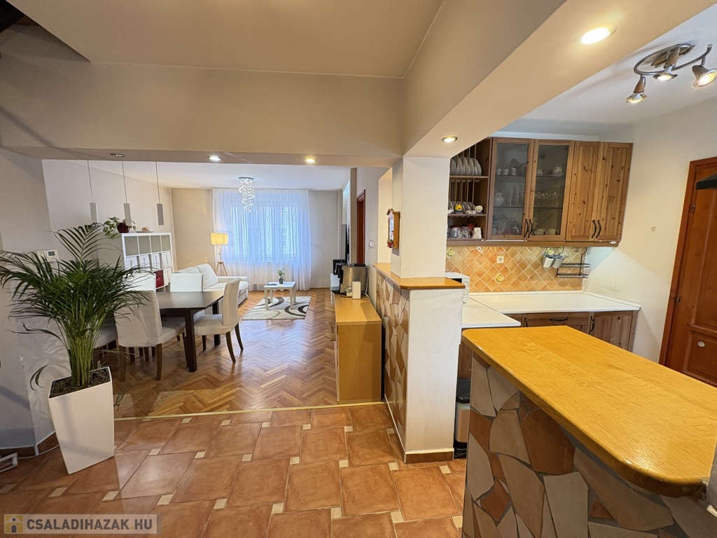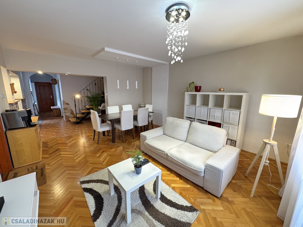 Kaposváron a Hársfa utcában - a kórház közelében - 140 m2-es, 2010-ben felújított 2 szintes házrész eladó. Az épület alsó szintjén tágas nappali-étkező, előszoba-közlekedő, konyha, kamra, 2 szoba, fürdőszoba, wc helyiségek találhatóak. A felső szinten – a tetőtérben - előtér, további 2 szoba, fürdőszoba-wc helyiségek kerültek kialakításra. Az épület fűtése és melegvíz ellátása kombi gázkazánnal megoldott, továbbá a szobákban a tulajdonos Midea típusú légkondicionálókat szereltetett, valamint a tetőre napelemeket telepíttetett. Az ingatlanhoz továbbá tartozik az udvaron egy hangulatosan kialakított terasz, illetve a melléképületben tároló rész is. Telek: 343 m2