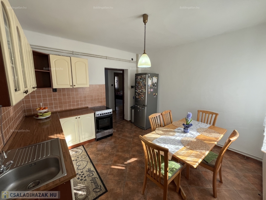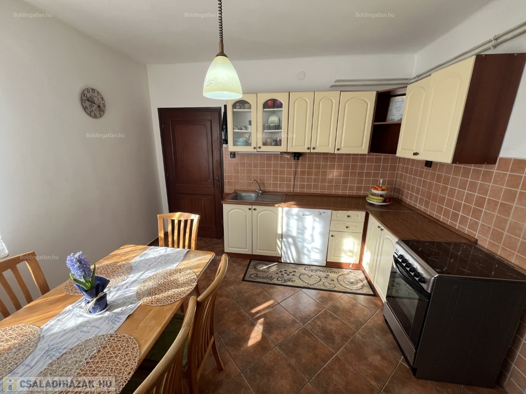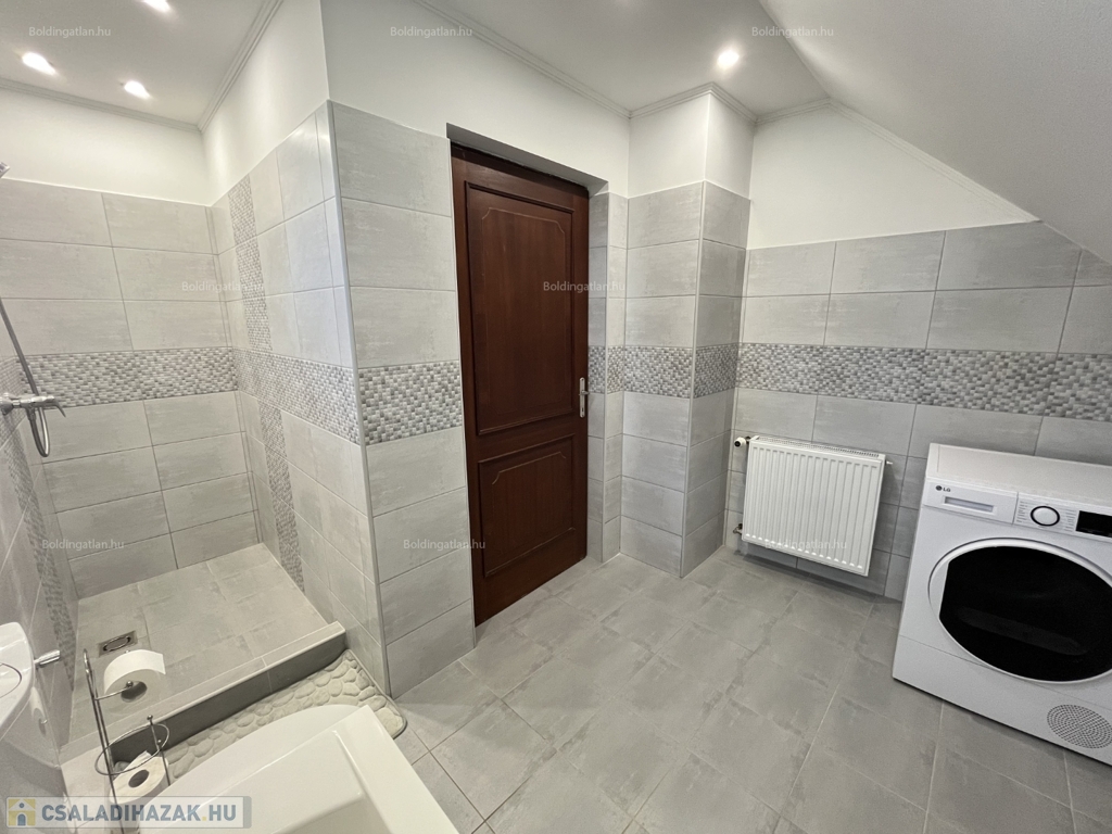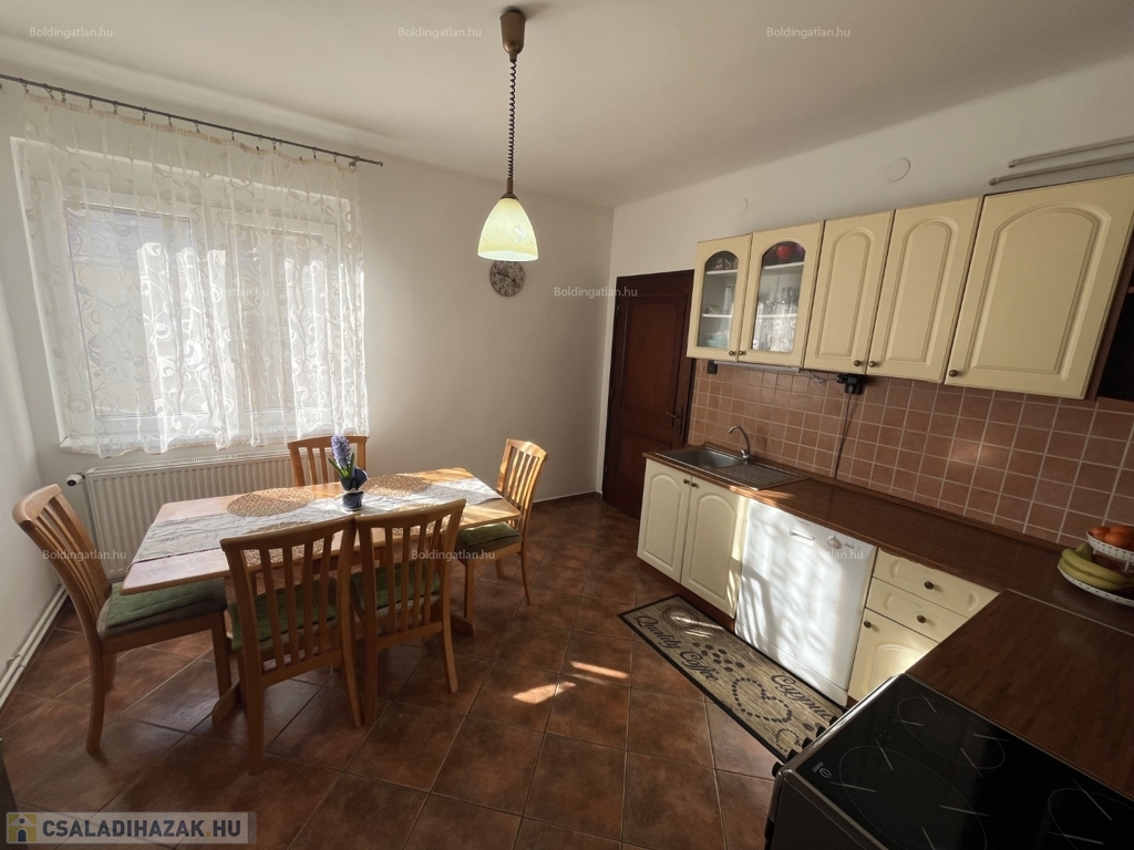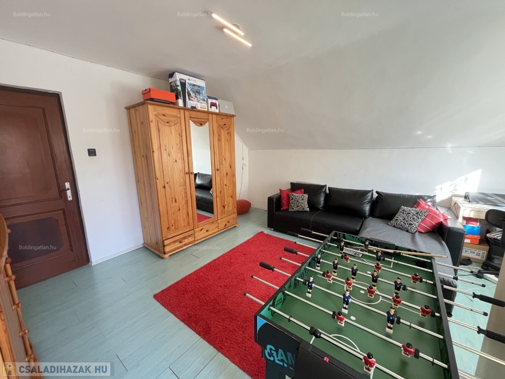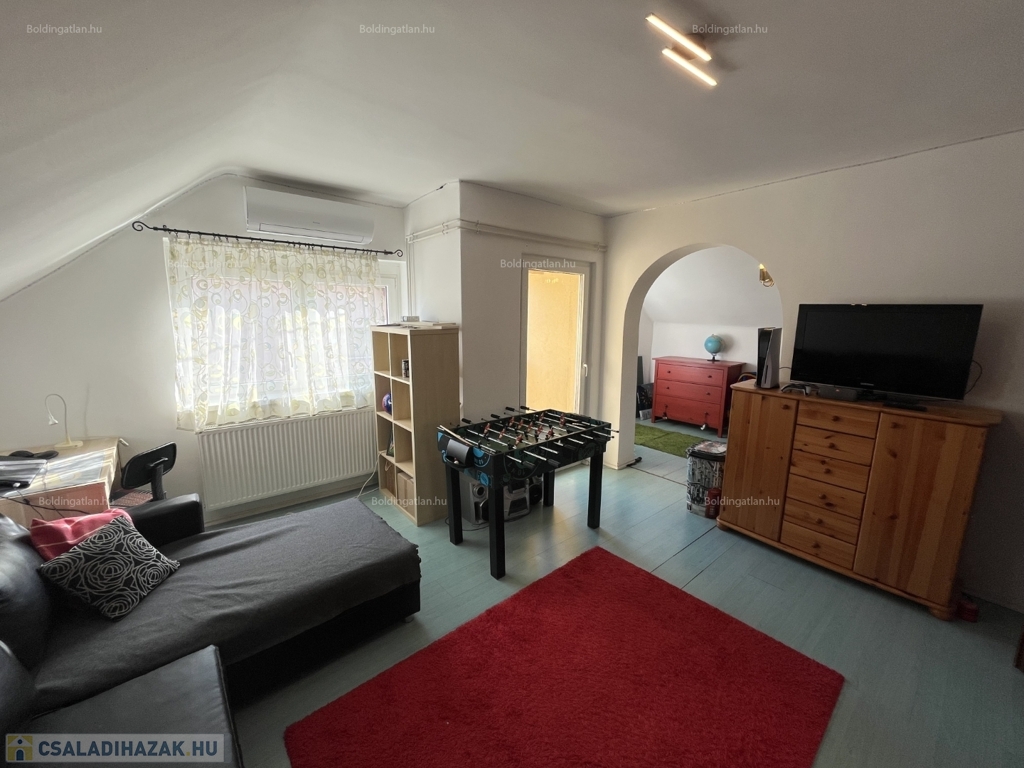 Kaposváron az igen kedvelt Északnyugati városrészben, 160 m2-es családi ház, 60 m2-es - akár önálló kis lakásnak is alkalmas melléképülettel együtt eladó. A lakóház földszintjén előszoba, tágas nappali, 2 szoba, konyha-étkező, kamra, fürdőszoba, wc-kézmosó helyiségek kerültek kialakításra. A tetőtérben további 2 szoba, erkély, közlekedő, és egy felújított fürdőszoba-zuhanyzó-wc és egy tároló helyiségek találhatóak. A családi ház fűtése a pincében található gázkazánnal, a meleg víz ellátása villanybojlerrel megoldott, valamint a nappaliban és a tetőtéri egyik szobában légkondícionáló is felszerelésre került. Az épület kívülről szigetelt, továbbá műanyag nyílászárók redőnnyel lettek beépítve. A kapu távirányítással működik, az udvar egy része térkővel borított, a melléképületben 1 szoba, konyha, fürdő helyiségek lettek kialakítva. Telek: 693 m2