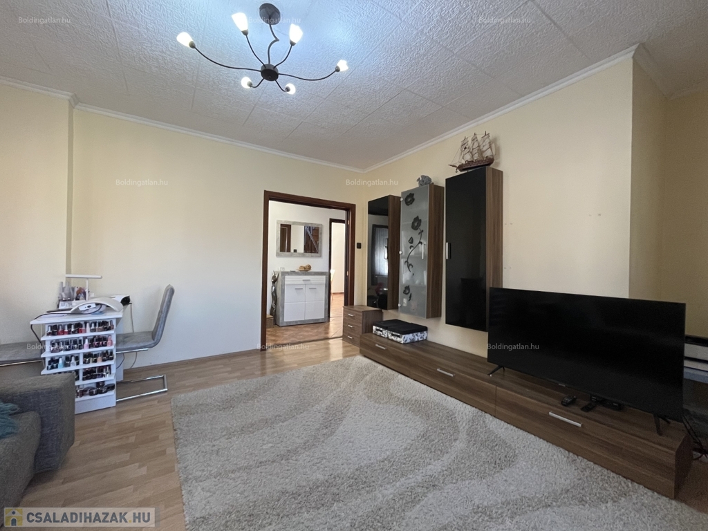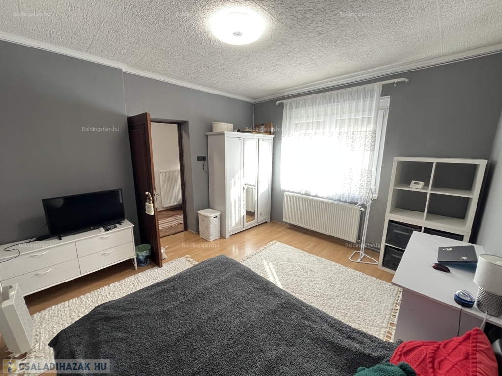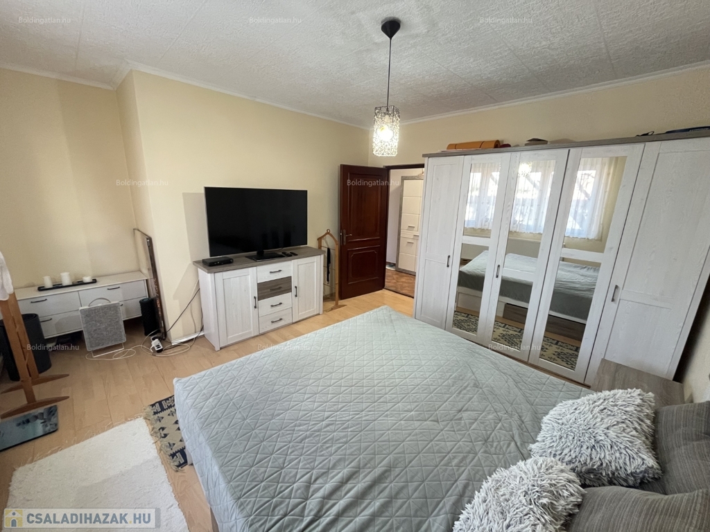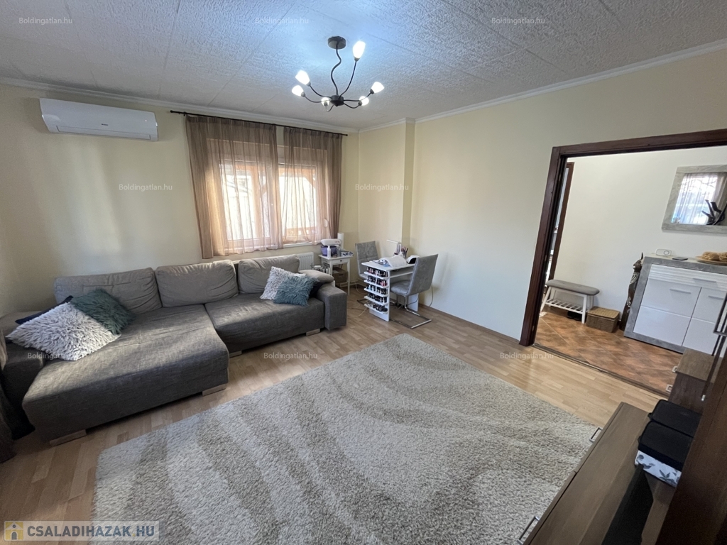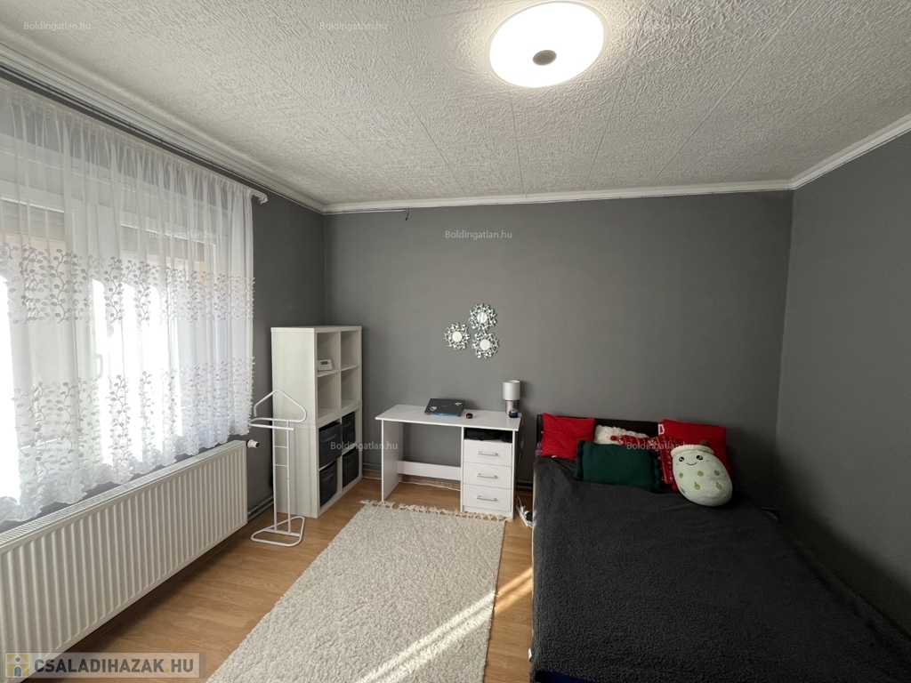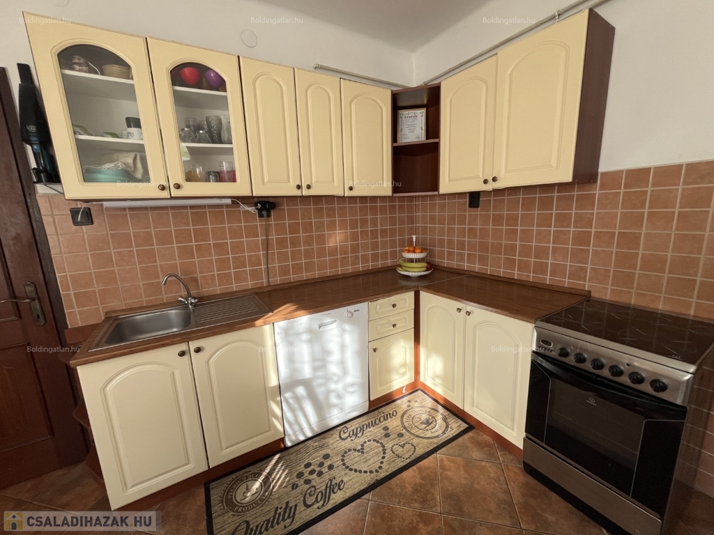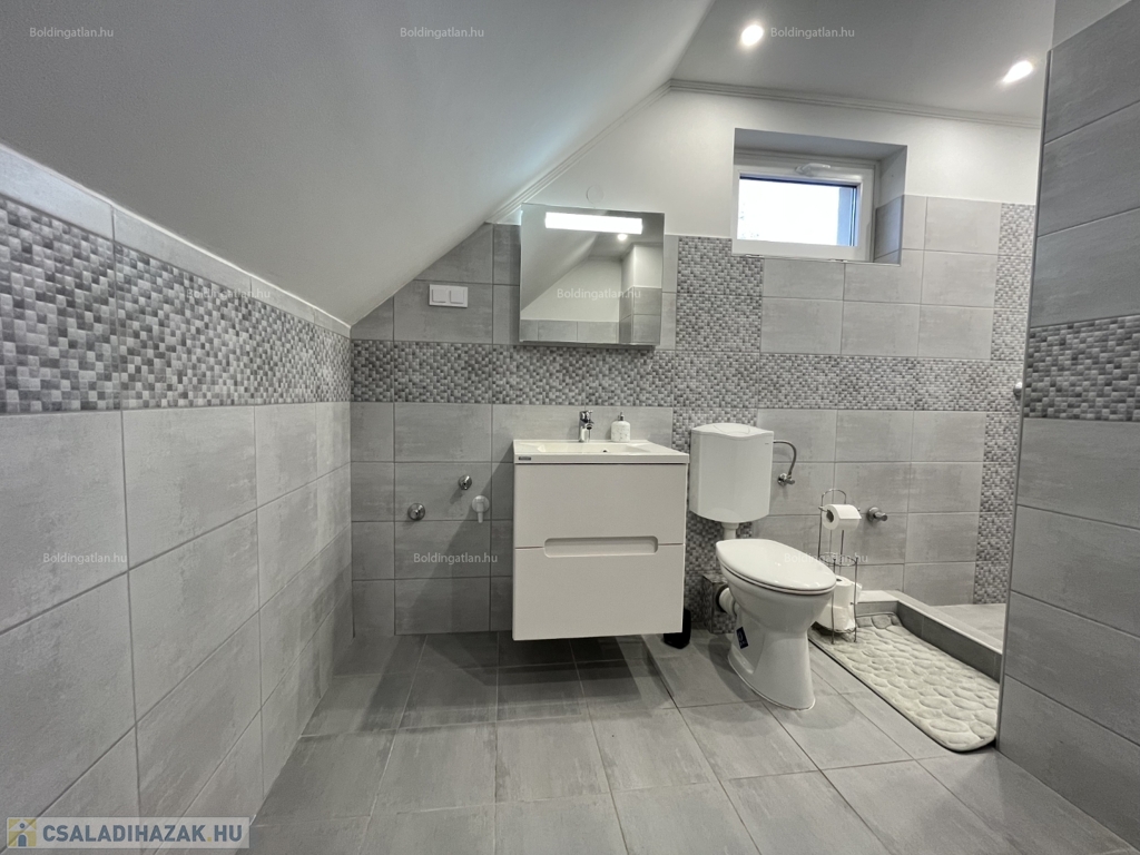Kaposváron az igen kedvelt Északnyugati városrészben, 160 m2-es családi ház, 60 m2-es - akár önálló kis lakásnak is alkalmas melléképülettel együtt eladó. A lakóház földszintjén előszoba, tágas nappali, 2 szoba, konyha-étkező, kamra, fürdőszoba, wc-kézmosó helyiségek kerültek kialakításra. A tetőtérben további 2 szoba, erkély, közlekedő, és egy felújított fürdőszoba-zuhanyzó-wc és egy tároló helyiségek találhatóak. A családi ház fűtése a pincében található gázkazánnal, a meleg víz ellátása villanybojlerrel megoldott, valamint a nappaliban és a tetőtéri egyik szobában légkondícionáló is felszerelésre került. Az épület kívülről szigetelt, továbbá műanyag nyílászárók redőnnyel lettek beépítve. A kapu távirányítással működik, az udvar egy része térkővel borított, a melléképületben 1 szoba, konyha, fürdő helyiségek lettek kialakítva. Telek: 693 m2