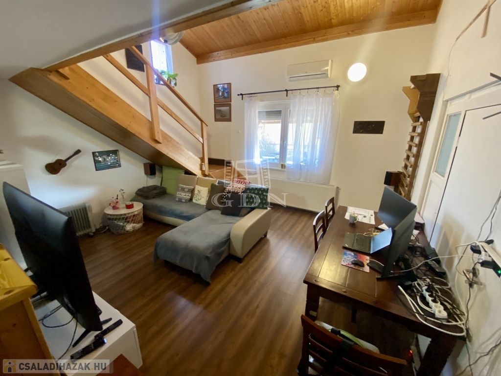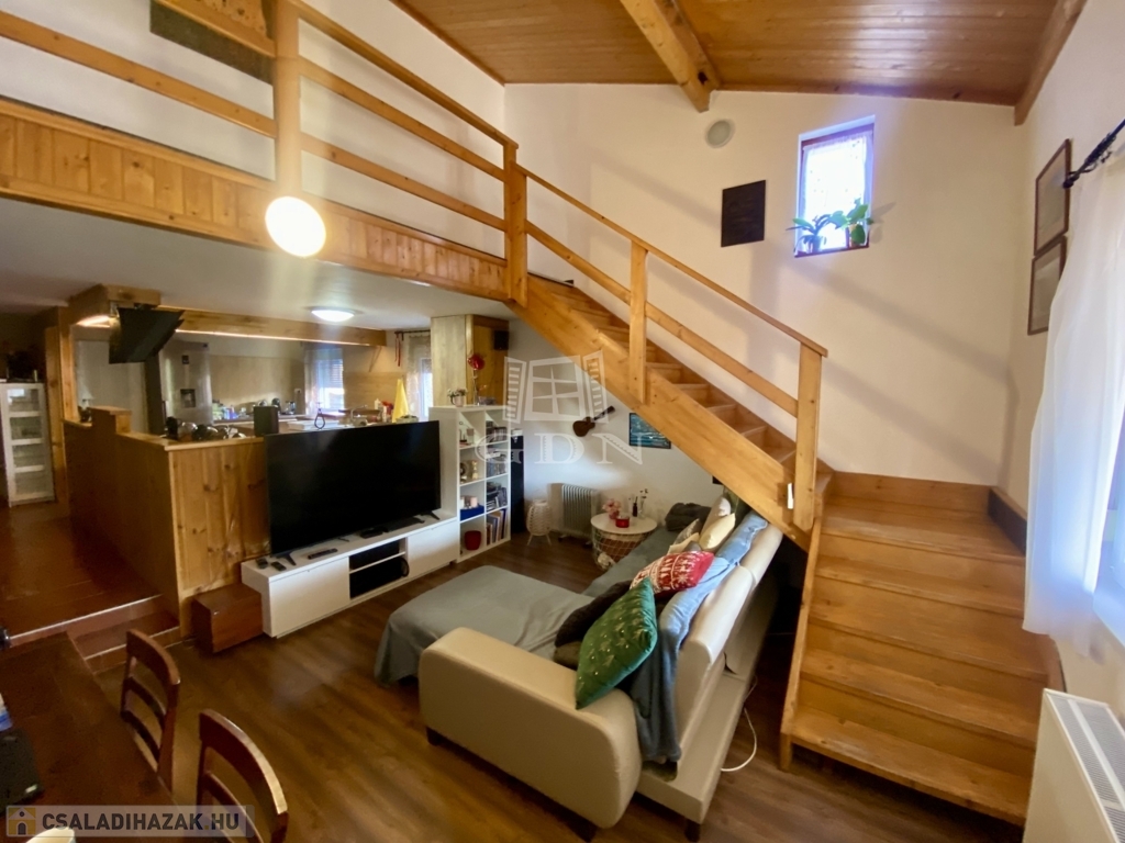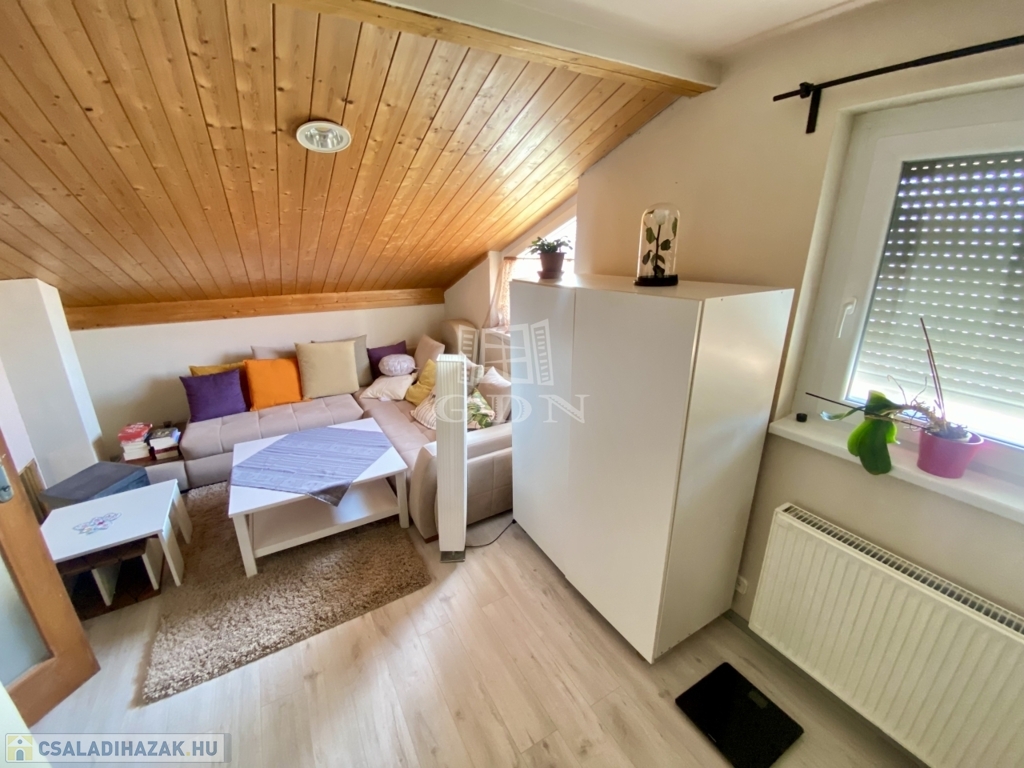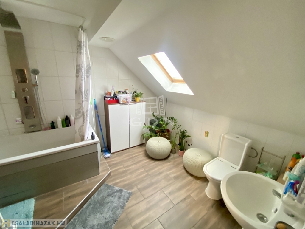 2002-ben épült, 136 nm-es, tetőtér beépítéses, amerikai konyhás nappali + 3 hálószobás, két fürdőszobás, cirkó fűtéses, klímás, műanyag thermo ablakos, külsőleg szigetelt, jó állapotú.