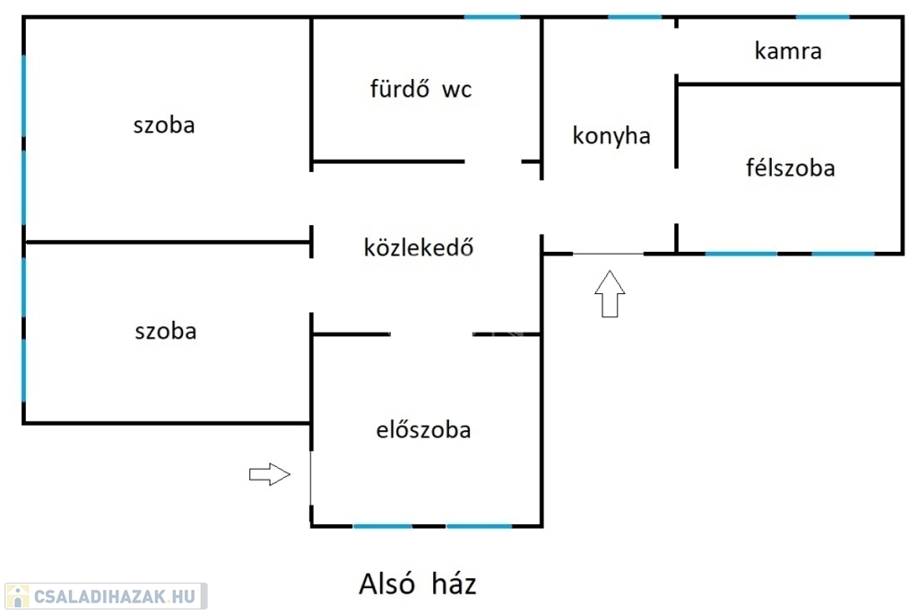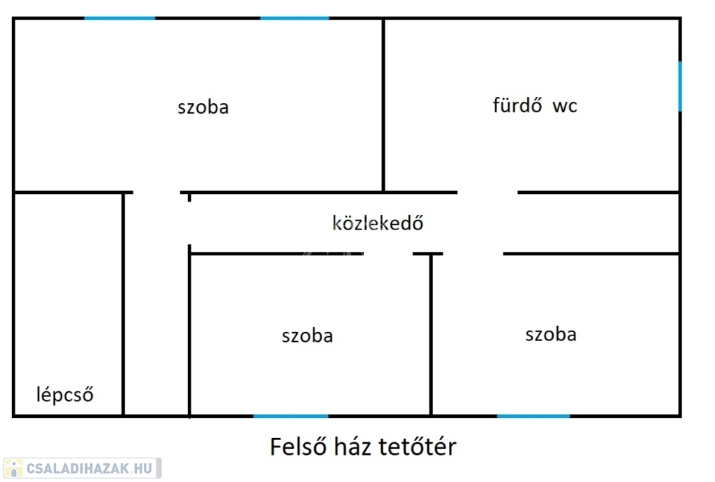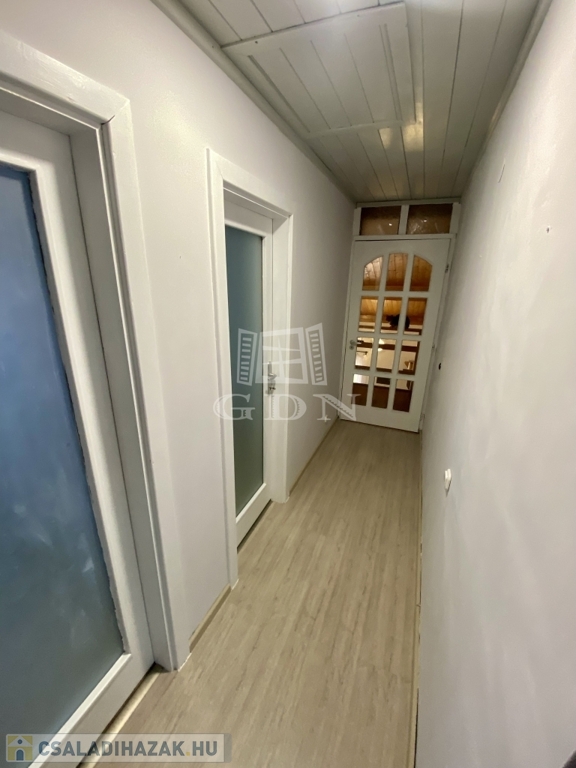 '60-as években épült, 99 nm-es, 2+1 félszobás, cirkó fűtéses, műanyag thermo ablakos, közepes állapotú.