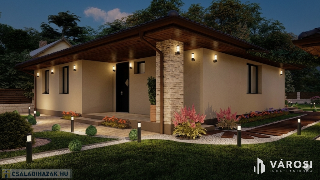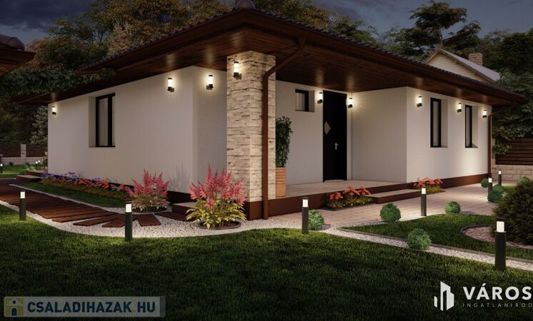 -bruttó 122nm-es családi ház (nettó 96nm-es) 3 lakószobával, fürdőszobával, külön wc-vel, háztartási helyiséggel, közlekedővel és amerikai nappalis konyhával.