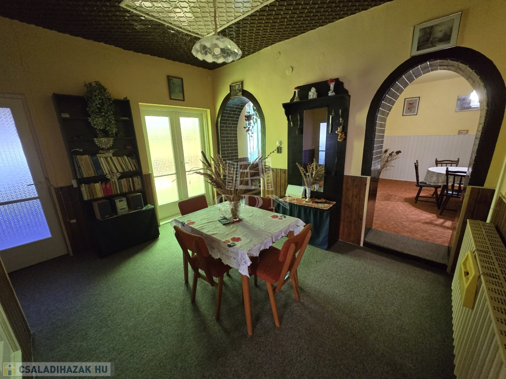 Az ingatlan vegyes falazatú, jó állapotú, cserépfedésű tetőszerkezete száraz, stabil faszerkezetű. A belső elrendezés kiváló: három különálló szoba, egy nagy nappali, előszoba, fürdőszoba, külön WC, folyosó, spájz, padlásfeljáró, valamint egy kazánház került kialakításra, melyből pince is nyílik, biztosítva a tárolási lehetőségeket.