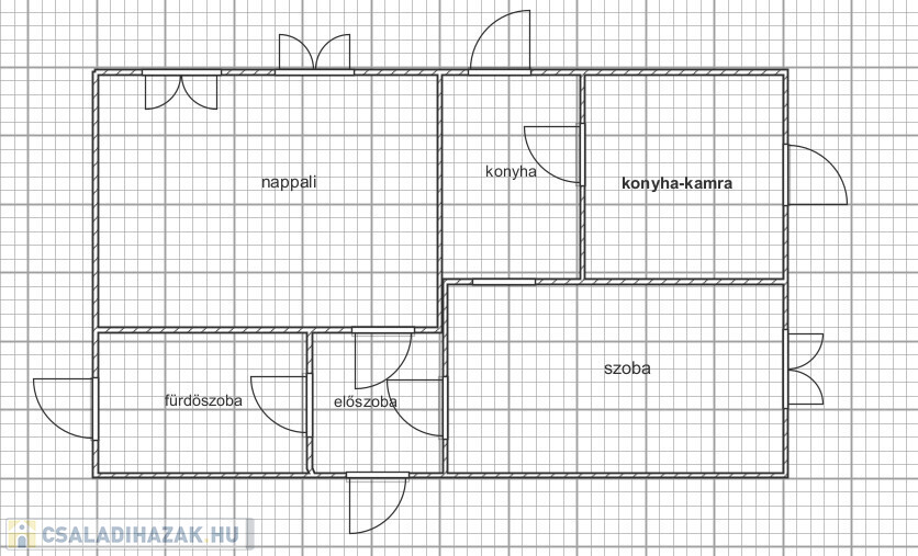 - 2 különnyíló szoba, fürdőszoba, konyha+kamra, előszoba