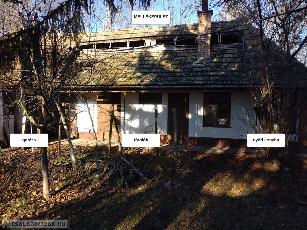 Az ingatlanon egy 67 négyzetméteres melléképület is található: nyári konyha, tűzifa tároló, kamra, garázs.