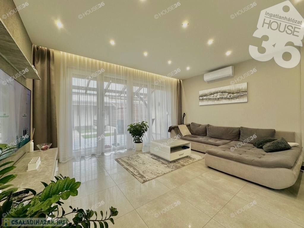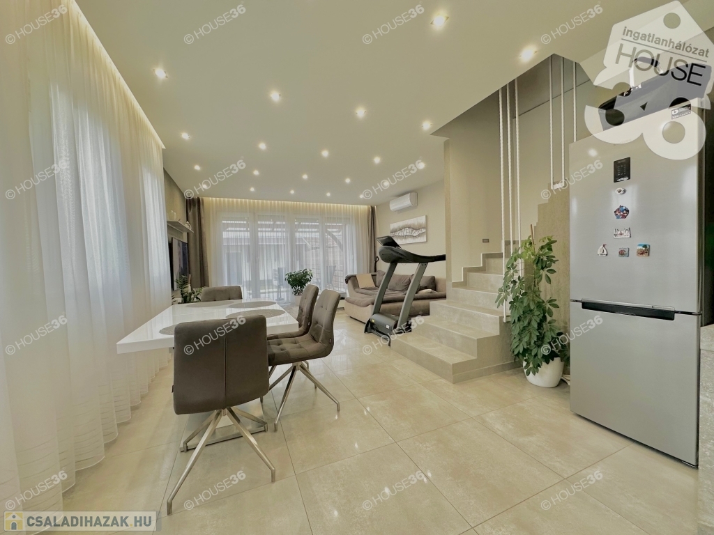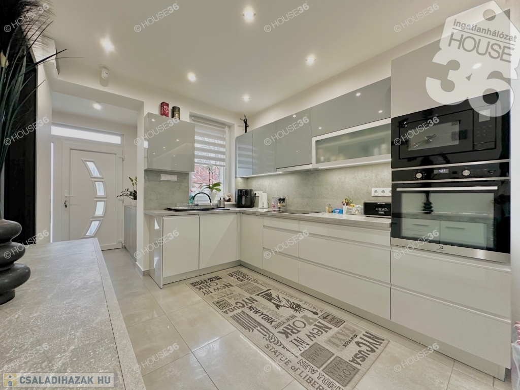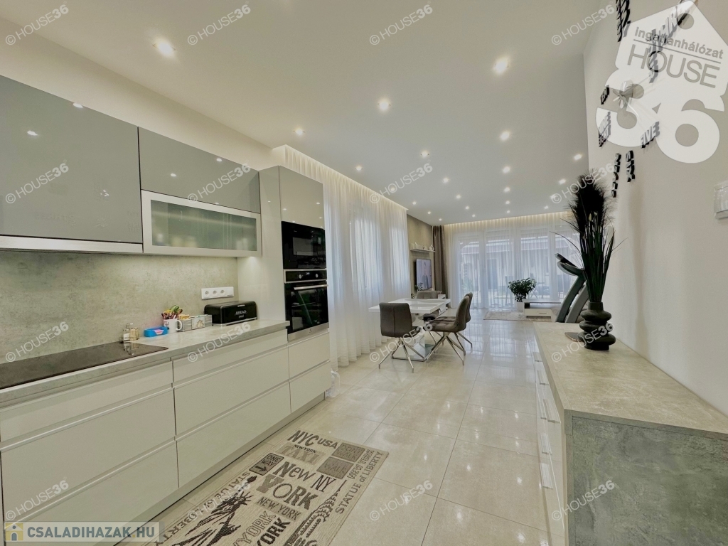 Kecskeméten a Vacsiközben eladó egy 2022-ben teljesen körűen felújított / újjáépített ikerház dupla garázzsal, pincével, fedett terasszal, kitűnő fekvéssel. (115m2/86m2)